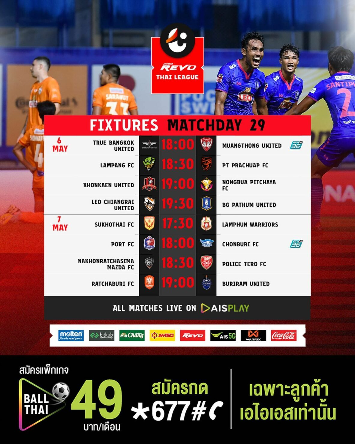 โปรแกรมถ่ายทอดสด ฟุตบอล รีโว่ ไทยลีก REVO THAI LEAGUE 2022/23 ประจำสัปดาห์ที่ 29