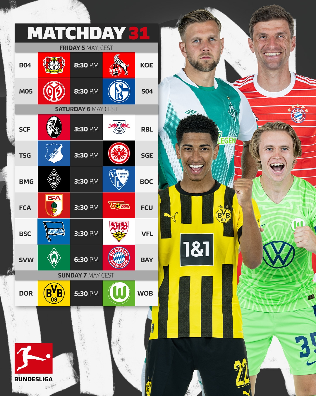 ตารางแข่งขัน บุนเดสลีกา เยอรมัน 2022/23 สัปดาห์ที่31 แข่ง 5-7 พ.ค. นี้