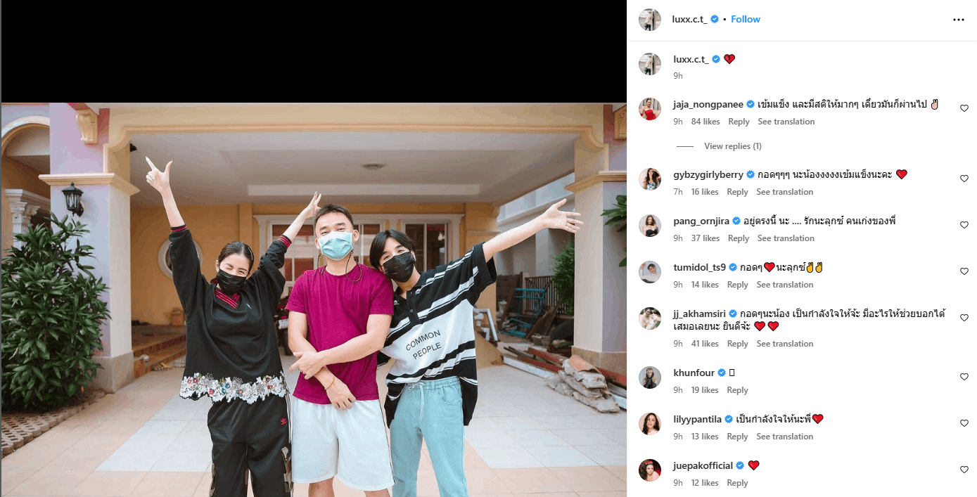 หลังจากที่โพสต์นี้ได้รับการเผยแพร่ออกไปก็มีคนในวงการบันเทิงและแฟนคลับเข้ามาให้กำลังใจจำนวนมาก