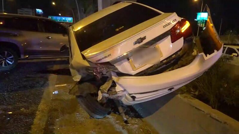 ใกล้กันพบรถเก๋งเชฟโรเลต ครูซ สีขาว ของ น.ส.วิภาดา บุตรแสน อายุ 33 ปี ถูกชนจนกระเด็นขึ้นไปเกยแบริเออร์เกาะกลาง ทำให้คนในรถและลูกวัยเพียง 5 เดือน บาดเจ็บ 3 ราย