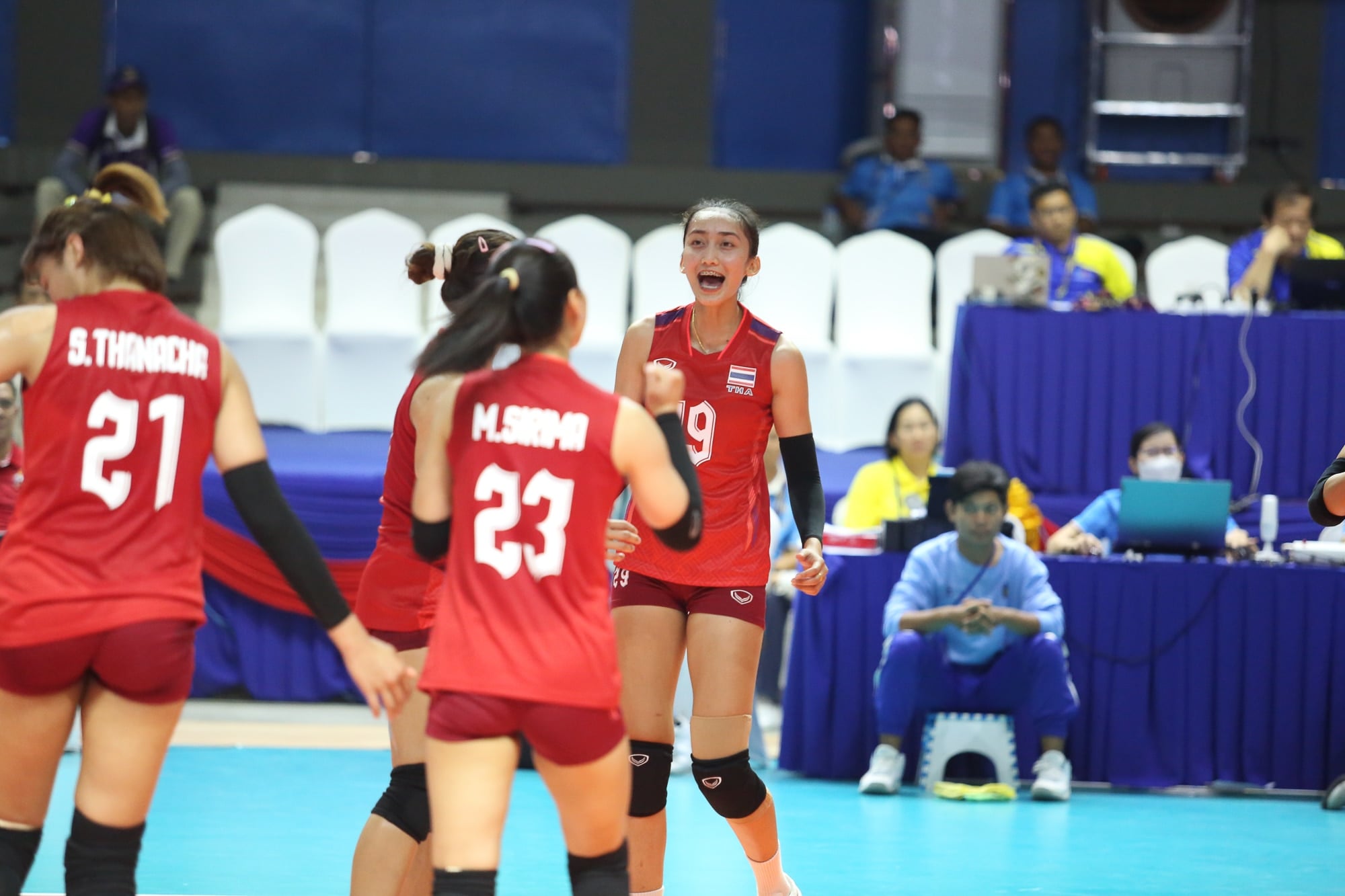 ใครที่ห่วงอาการบาดเจ็บของโสรยา พรหมล้า สบายใจได้แล้ว เพราะนัดเมื่อวานกลับมาลงสนามพร้อมรอยยิ้ม โชว์ฟอร์มหลอกบล็อกยอดเยี่ยมทำเอาทีมเมียนมาหัวหมุน ตำแหน่งอื่น ๆ เองก็ฟอร์มเข้าฝัก เพียว อัจฉราพร คงยศ ลงสนามเป็นครั้งแรกเคาะสนิมหลังกลับจากตุรกี ทุบหัวเสาตู้มๆ ขณะที่สาว ดาริน ปิ่นสุวรรณ ก็เกมบุกทำได้ดีขึ้นกว่าเดิม