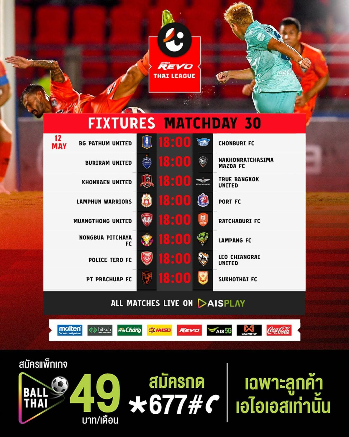 โปรแกรมถ่ายทอดสด ฟุตบอล รีโว่ ไทยลีก REVO THAI LEAGUE 2022/23 ประจำสัปดาห์ที่ 30