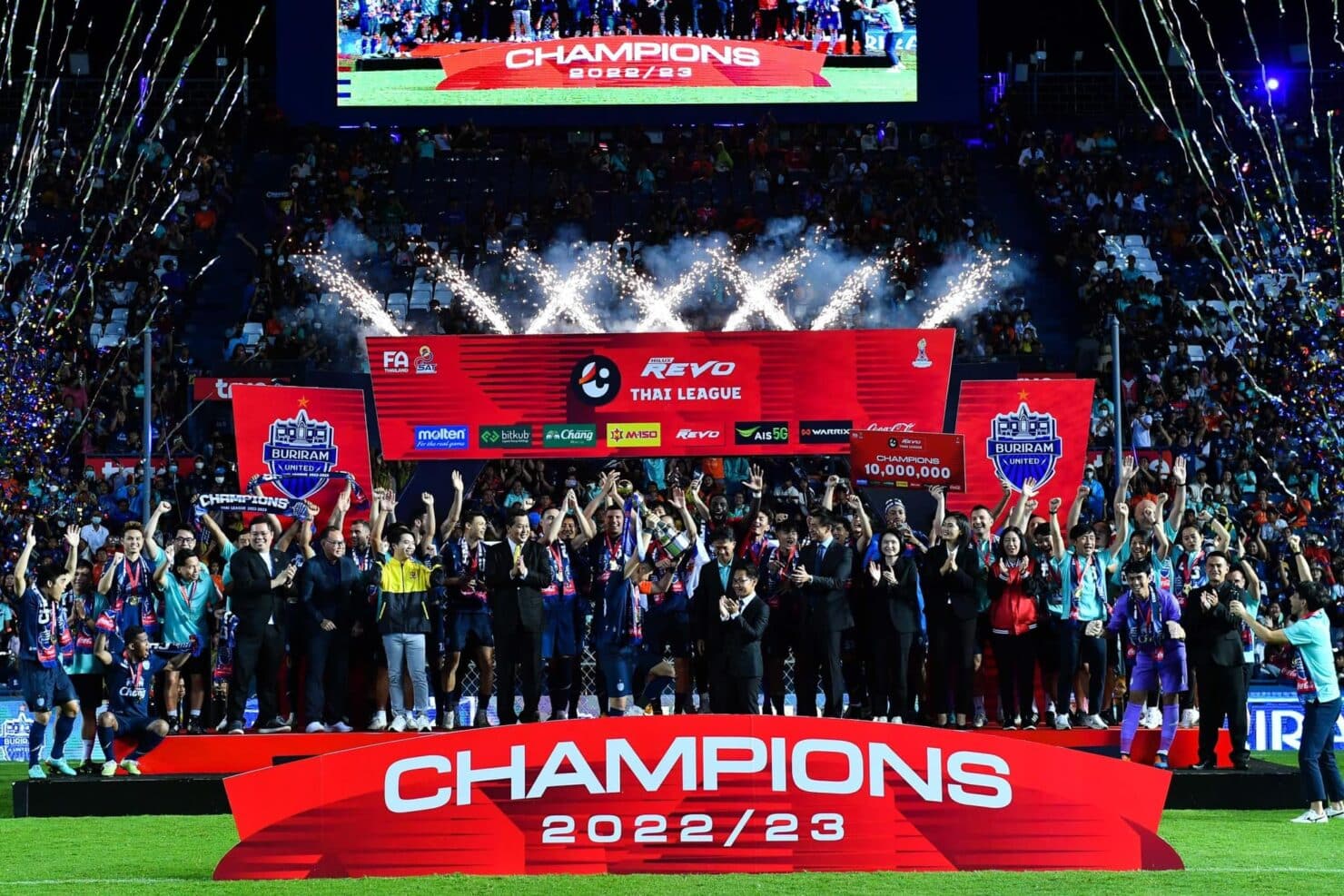 วันที่ 12 พฤษภาคม 2566 ที่ผ่านมา ณ ช้าง อารีนา สมาคมกีฬาฟุตบอลแห่งประเทศไทยฯ ร่วมกับ บริษัท ไทยลีก จำกัด จัดพิธีมอบถ้วยแชมป์ รีโว่ ไทยลีก ฤดูกาล 2022/23 ให้กับ สโมสร บุรีรัมย์ ยูไนเต็ด