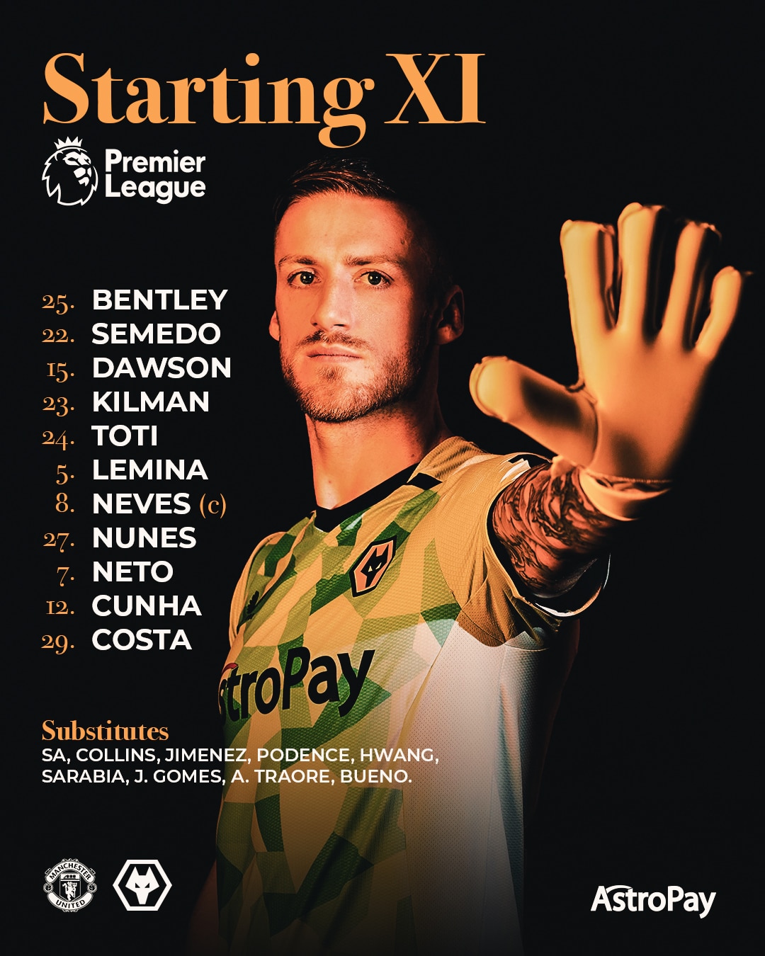 11 ตัวจริง แมนยู พบ วูลฟ์แฮมป์ตัน แข่ง 21.00 น. คืนนี้ (ลิงก์ดูบอล)