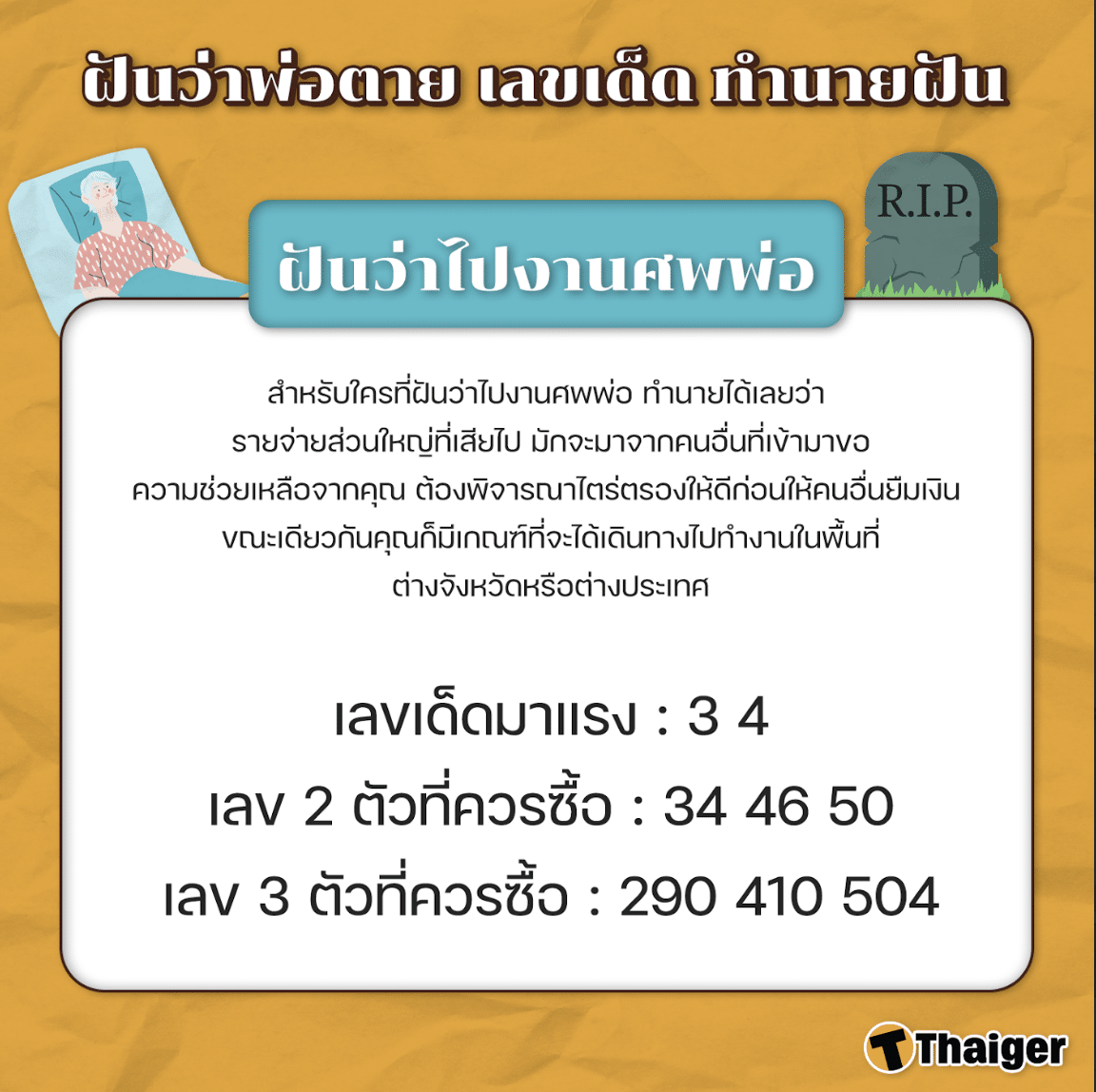 - ฝันว่าไปงานศพพ่อ เลขเด็ดมาแรง : 3 4