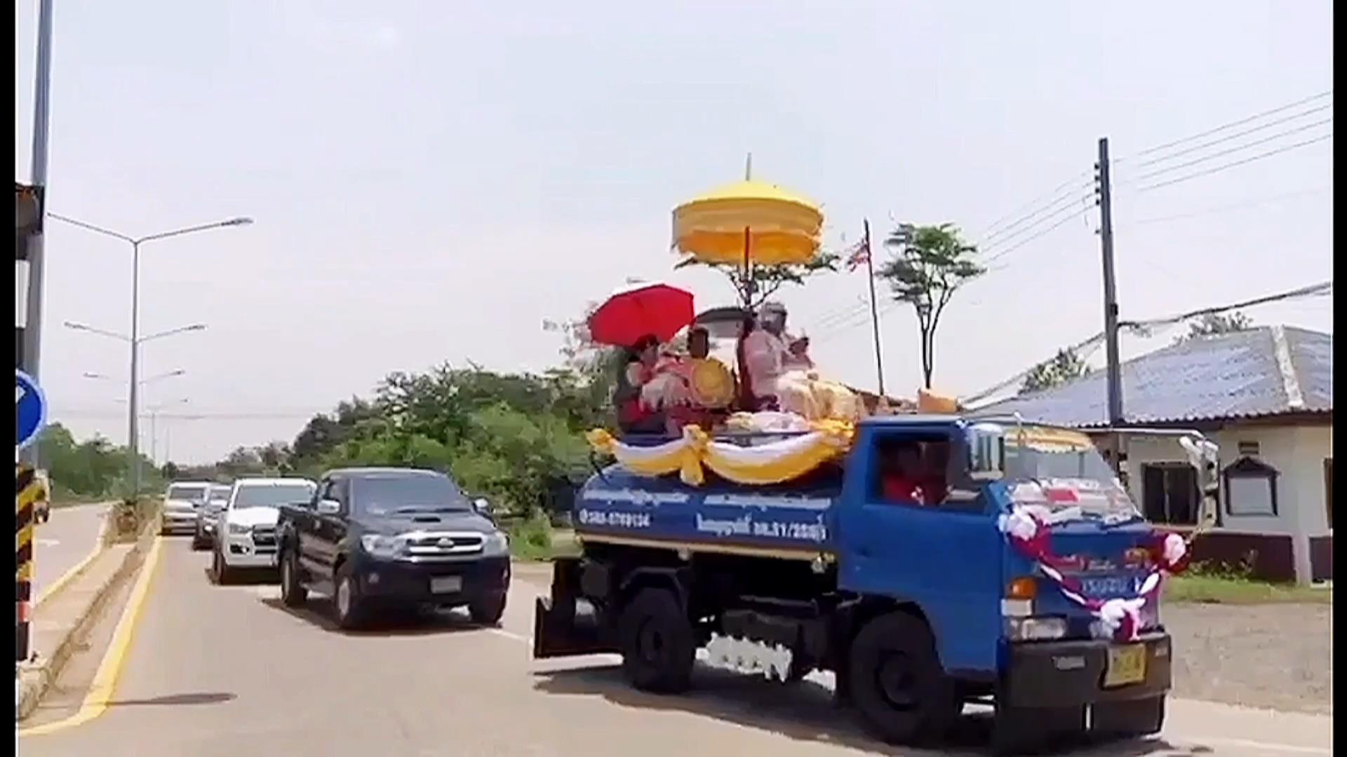 ชาวบ้านฮือฮา พ่อใช้ ‘รถดูดส้วม’ แห่นาค ในงานบวชลูกชาย