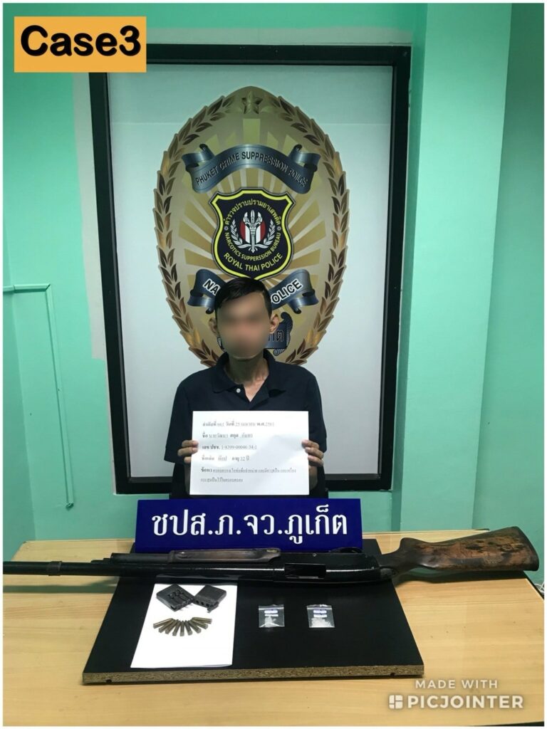 สำหรับการจับกุมในครั้งนี้ ประกอบด้วย รายที่ 1 เมื่อวันที่ 23 เมษายน 2561 เวลาประมาณ 12.30 น. จับกุมตัว น.ส.เบญจรัตน์ หรือโม ทองเกิด อายุ 23 ปี พร้อมด้วย ยาไอซ์จำนวน 1 ถุง น้ำหนัก 0.51 กรัม โดยกล่าวหาว่า “มียาเสพติดให้โทษประเภท1 (ไอซ์) ไว้ในครอบครองเพื่อจำหน่ายโดยไม่ได้รับอนุญาต” สามารถจับกุม ถ.ภูเก็ต ต.ตลาดใหญ่ อ.เมือง จ.ภูเก็ต รายที่ 2 เมื่อวันที่ 23 เมษายน 2561 เวลาประมาณ 14.00 น. จับกุมตัวผู้ต้องหา คือ น.ส.ทอฝัน หรือดรีม เกตศัทธา อายุ 21 ปี พร้อมของกลาง ยาไอซ์ จำนวน 2 ถุง รวมน้ำหนัก 0.22 กรัม โดยกล่าวหาว่า “มียาเสพติดให้โทษประเภท1 (ไอซ์) ไว้ในครอบครองโดยไม่ได้รับอนุญาต” สามารถจับกุม ถ.ภูเก็ต ต.ตลาดใหญ่ อ.เมือง จ.ภูเก็ต รายที่ 3 เมื่อวันที่ 23 เมษายน 2561 เวลาประมาณ 18.00น. จับกุมตัว นายวัฒนา หรือท๊อป อัมพร อายุ 32 ปี พร้อมด้วยของกลาง ยาไอซ์ จำนวน 2 ถุง รวมน้ำหนัก 1.75กรัม อาวุธปืนลูกซอง จำนวน 1 กระบอก อาวุธปืนไทยประดิษฐ์ ขนาด .22 จำนวน 1 กระบอก และเครื่องกระสุนปืนขนาด .22 LR จำนวน 9 นัด โดยกล่าวหาว่า “มียาเสพติดให้โทษประเภท1 (ไอซ์) ไว้ในครอบครองเพื่อจำหน่ายโดยไม่ได้รับอนุญาต, มีอาวุธปืน และเครื่องกระสุนปืนไว้ในครอบครองโดยผิดกฎหมาย” จับกุม ริมถนนซ.ดำรง ต.ตลาดใหญ่ อ.เมือง จ.ภูเก็ต ต่อเนื่อง บ้านพัก ถ.สามกอง ซ.1 ต.รัษฎา อ.เมือง จ.ภูเก็ต