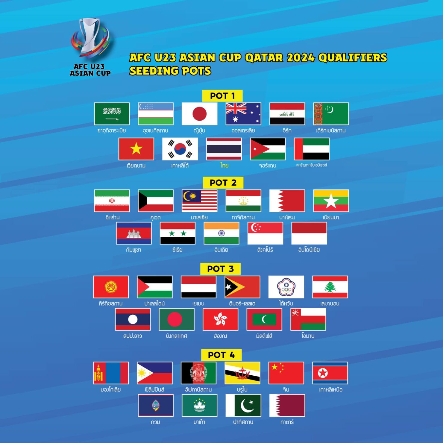 โดยโถจับสลากแบ่งสายศึกฟุตบอลชิงแชมป์เอเชีย 2024 รุ่นอายุไม่เกิน 23 ปี รอบคัดเลือก ประกอบไปด้วย