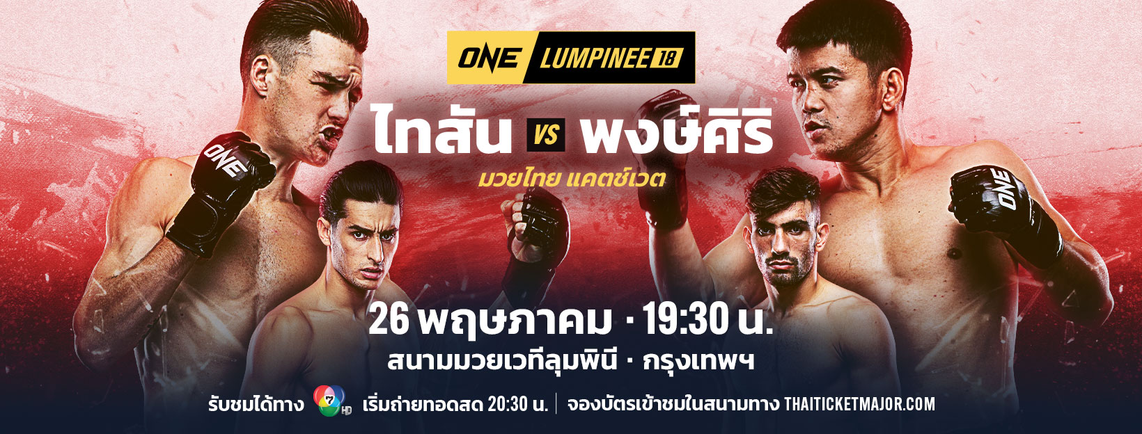 โปรแกรมมวย ONE ลุมพินี 18 สัปดาห์นี้ คู่เอก “ไทสัน แฮร์ริสัน” มวยใจเกินร้อยจากออสเตรเลีย พร้อมเดินลุยไม่ถอยวัดพลังหมัด “พงษ์ศิริ พีเค.แสนชัยฯ” มวยบู๊ไม่กลัวใคร ที่หวังเรียกฟอร์มเก่งกลับคืนมาให้ได้ อย่างไรก็ตาม “พงษ์ศิริ” ทำน้ำหนักไม่ผ่านตามพิกัดรุ่นแบนตัมเวต (135 – 145 ป.) จึงยินยอมจ่ายค่าชดเชยน้ำหนักให้ “ไทสัน” และตกลงชกกันในพิกัดเฉพาะ 147.6 ป. แทน