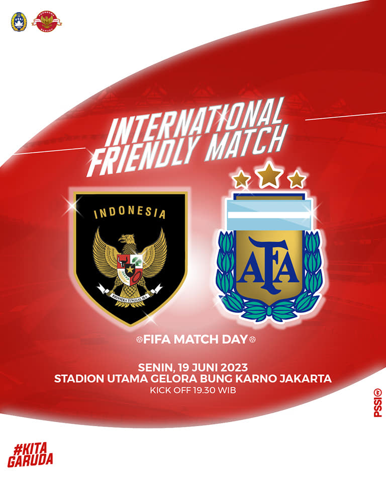 เว็บไซต์อย่างเป็นทางการของสหพันธ์ฟุตบอลอินโดนีเซียหรือ PSSI และเว็บไซต์ ASEAN FOOTBALL ได้มีการประกาศราคาตั๋วเข้าชมเกมฟุตบอลอุ่นเครื่องฟีฟ่าเดย์ ระหว่าง ทีมชาติอินโดนีเซีย พบ “แชมป์โลก” อาร์เจนตินา ซึ่งเกมนี้จะฟาดแข้งที่สนามเกโลรา บุง การ์โน (เสนายัน) ในวันที่ 19 มิถุนายน 2566