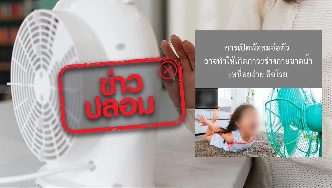 ตามที่มีข้อความถูกแชร์ต่อในโลกออนไลน์เรื่อง เปิดพัดลมจ่อตัว ทำให้เกิดภาวะร่างกายขาดน้ำ เหนื่อยง่าย อิดโรยนั้น ทางศูนย์ต่อต้านข่าวปลอม ได้ดำเนินการตรวจสอบข้อเท็จจริงโดย โรงพยาบาลราชวิถี 2 (รังสิต) กรมการแพทย์ กระทรวงสาธารณสุข พบว่าประเด็นดังกล่าวนั้น เป็นข้อมูลเท็จ