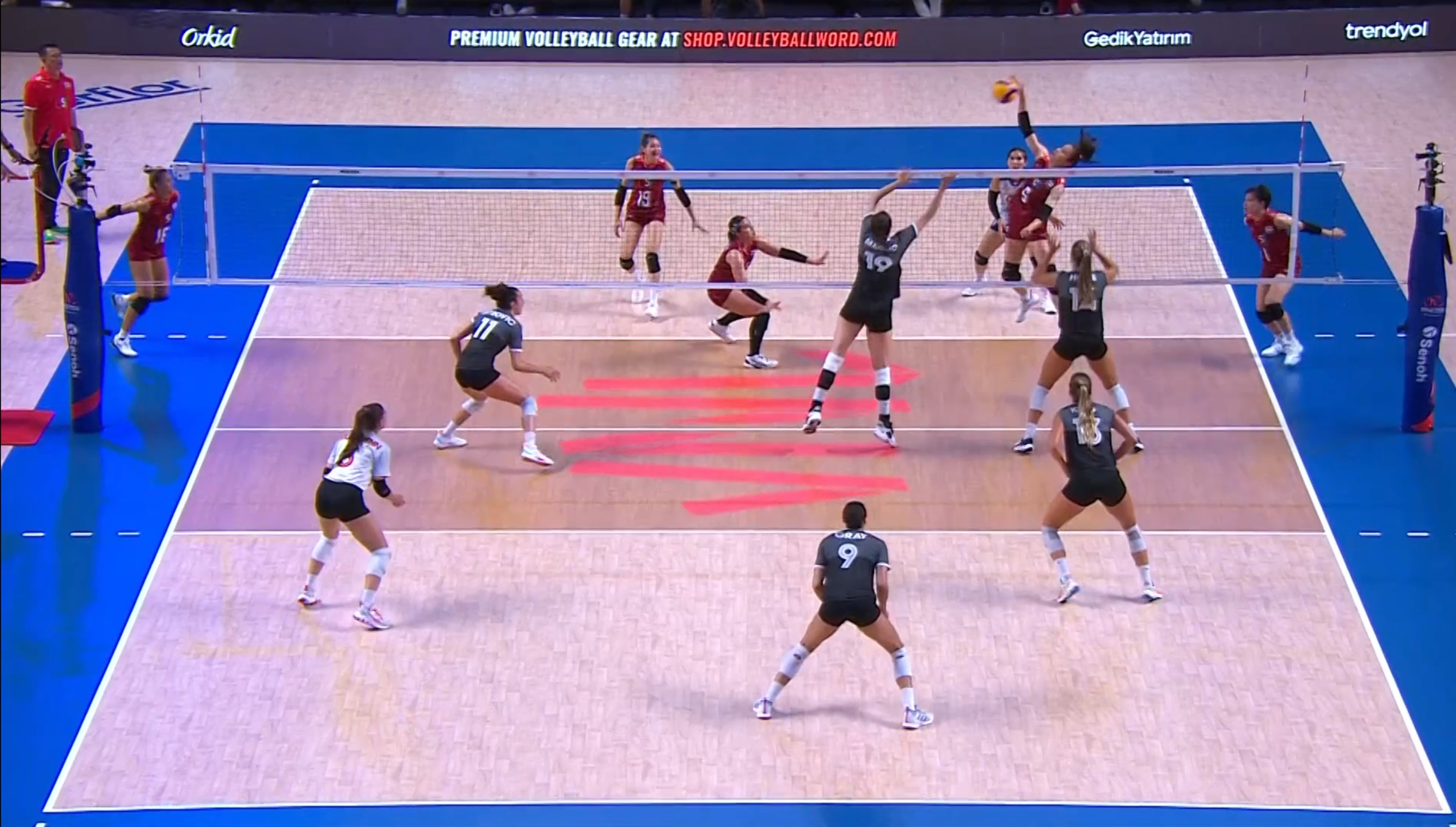 ผู้เล่น 6 คนแรกนัดนี้โค้ชด่วนพัก เพียว อัจฉราพร ให้มด วิภาวี ลงสนาม พร้อมด้วย ชัชชอุร โมกศรี พิมพิชยา ก๊กรัมย์ เซตเตอร์นำทัพโดย พรพรรณ บอลเร็ว ทัดดาว และ หัตถยา