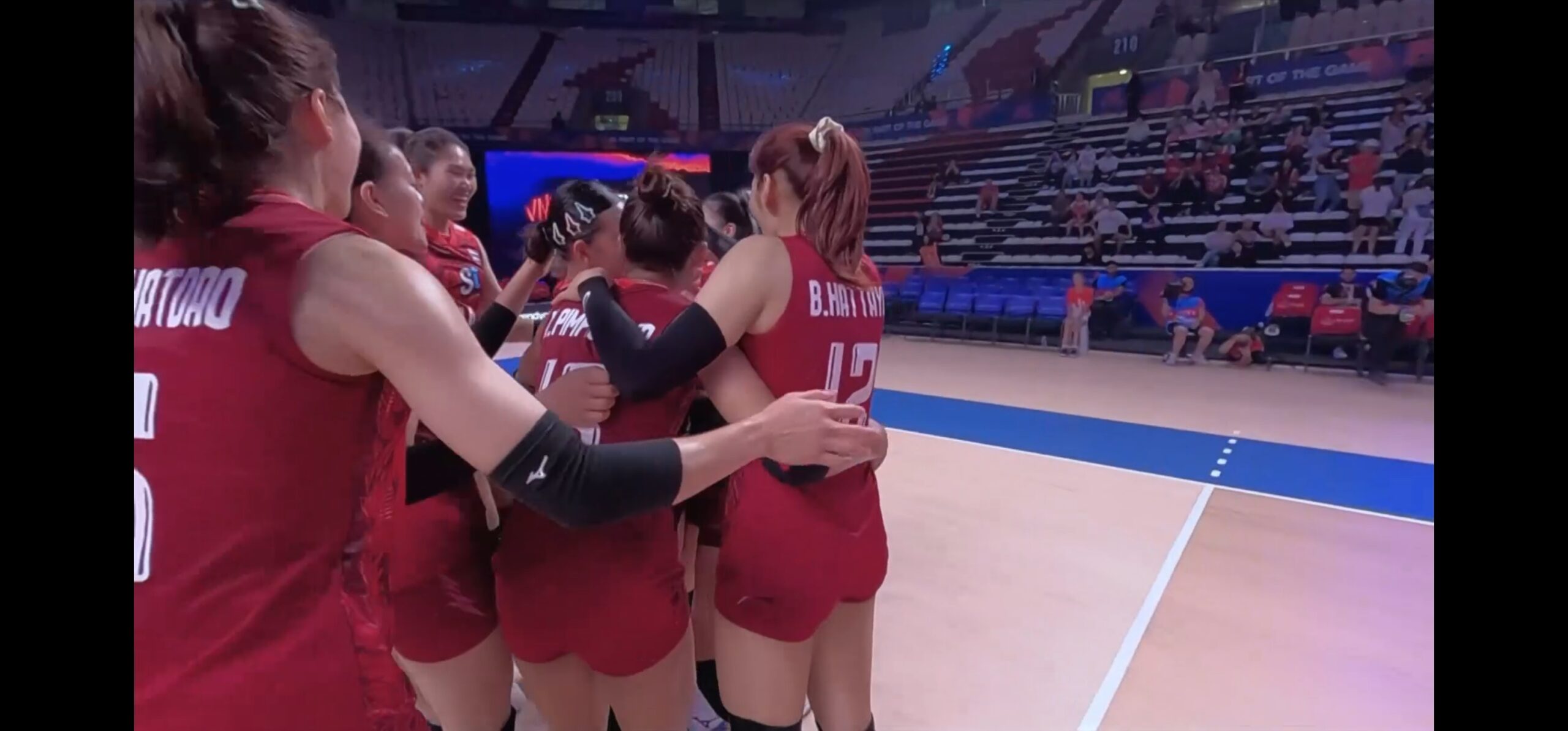 ไฮไลท์เด็ดเกิดขึ้นในแต้ม 16-11 พู่ พรพรรณเล่นบอลสองได้แต้ม กองเชียร์เฮทั้งสนาม แถมบุ๋มบิ๋มมอนส์เตอร์บล็อกได้อีกในแต้มติดกัน ระยะห่างอยู่ที่ 5 แต้ม แล้วกองเชียร์ได้ขนลุกอีกครั้งในแต้มแรลลี่ 19-13 สาวไทยเหนียวมาก ๆ จนสาวเมเปิ้ลตบพลาดไปเอง