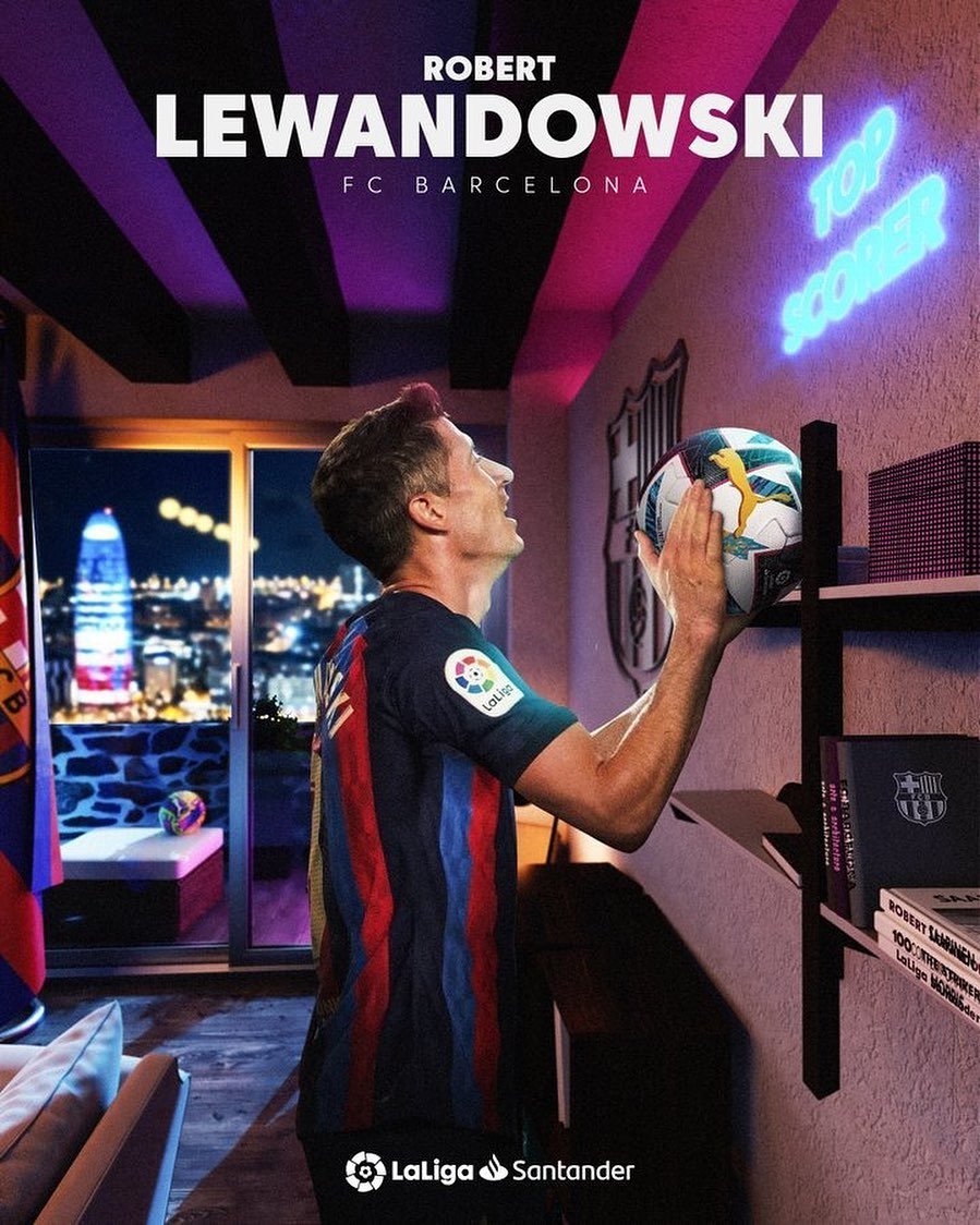 1. โรเบิร์ต เลวานดอฟสกี้ (บาร์เซโลน่า) 23 ประตู