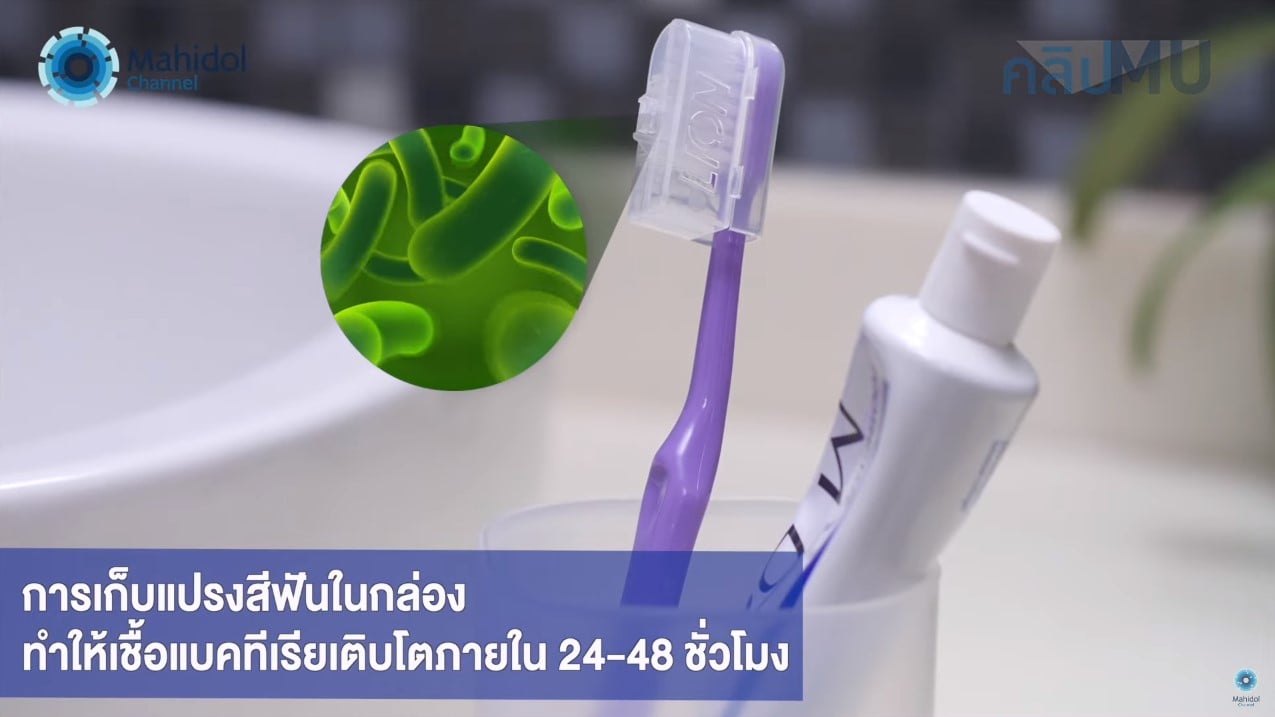 การเก็บแปรงสีฟันที่ใช้แล้วไว้ในกล่อง จะทำให้เชื้อแบคทีเรียที่ขนแปรงเจริญเติบโตได้นี้ ใน 24-48 ชั่วโมง จึงควรเก็บโดยตั้งแปรงไว้ ในที่ที่อากาศถ่ายเท ช่วยลดแบคทีเรียได้ภายใน 1 ชั่วโมง