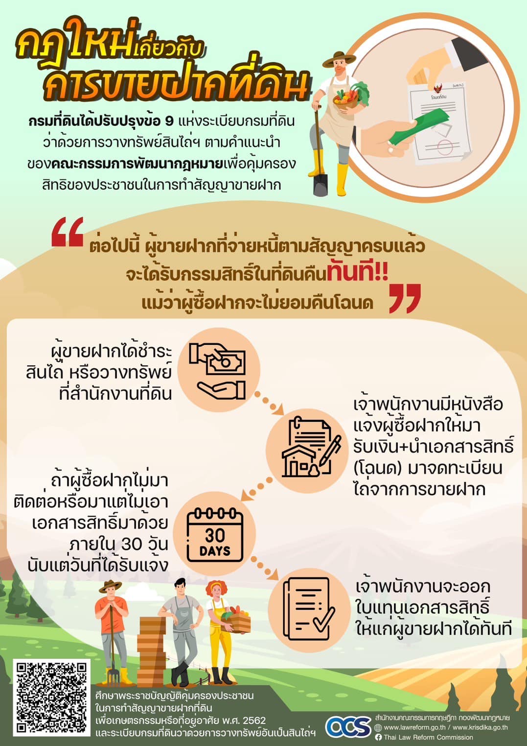 (1) กฎหมายว่าด้วยการคุ้มครองประชาชนในการทำสัญญาขายฝาก ที่ดินเพื่อเกษตรกรรม หรือที่อยู่อาศัย พ.ศ.2562 และ “ฉบับที่ 2” พ.ศ.2566