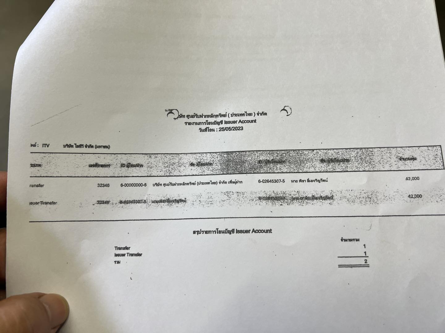 เอกสารดังกล่าว เป็นรายงานการโอนหุ้นไอทีวีจำนวน 42,000 หุ้นของนายพิธา ไปยัง นายพาสิน ลิ้มเจริญรัตน์ เมื่อวันที่ 25 พ.ค.2566 สำเนาหมายเหตุประกอบงบการเงินของบริษัทไอทีวี เมื่อวันที่ 31 มี.ค.2566
