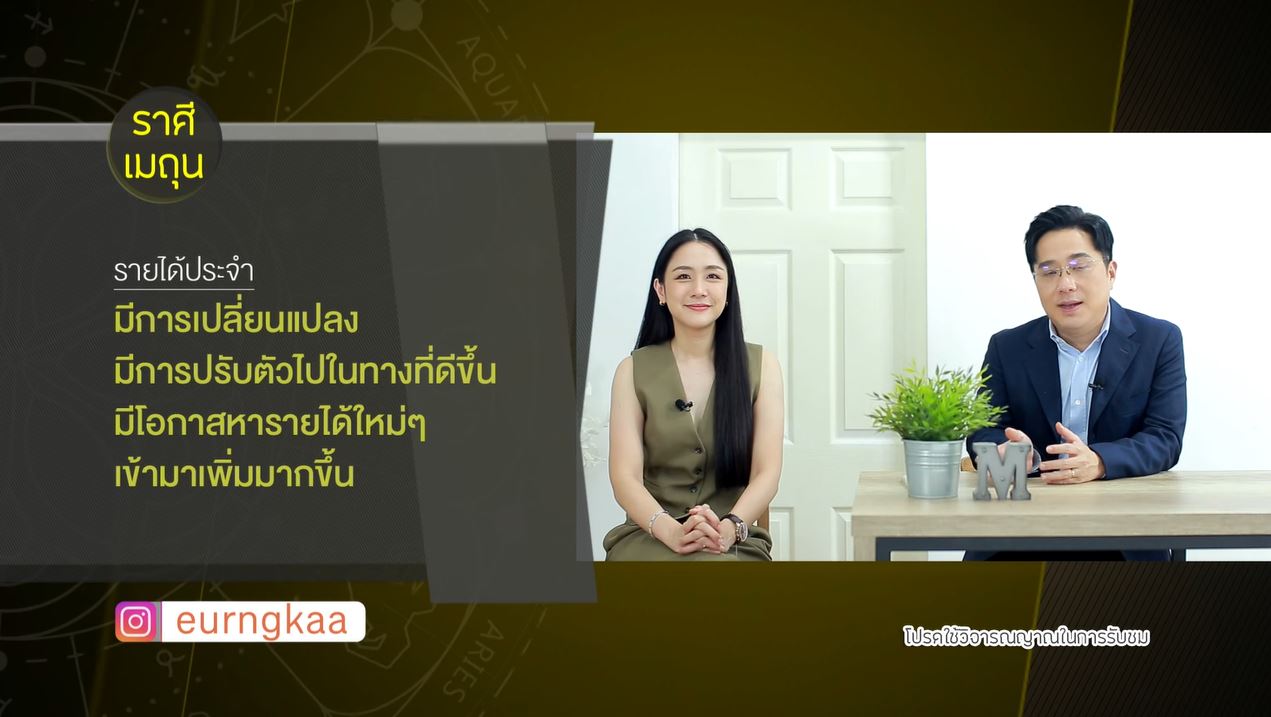 - ดวงช่วงนี้ค่อนข้างเปลี่ยนแปลงทิศทางบวกมากขึ้น เพราะช่วงก่อนหน้านี้ เม.ย. มาอาจจะมีปัญหาเครียด กดดัน มีปัญหางาน สุขภาพ ต่างๆ ตอนนี้ดวงดาวเริ่มคลี่คลาย ส่งผลให้เรื่องการเงินโดดเด่นอันดับหนึ่งเลย โดยเฉพาะการเจรจาเกี่ยวกับการเงิน ขอสินเชื่อ ขอกู้ การทำธุรกรรมทั้งหลาย ดวงเครดิตดี หรือรายได้ใหม่ๆ เข้ามาเพิ่มเติม ส่งเสริมให้เกิดความมั่นคงการเงินที่ดี