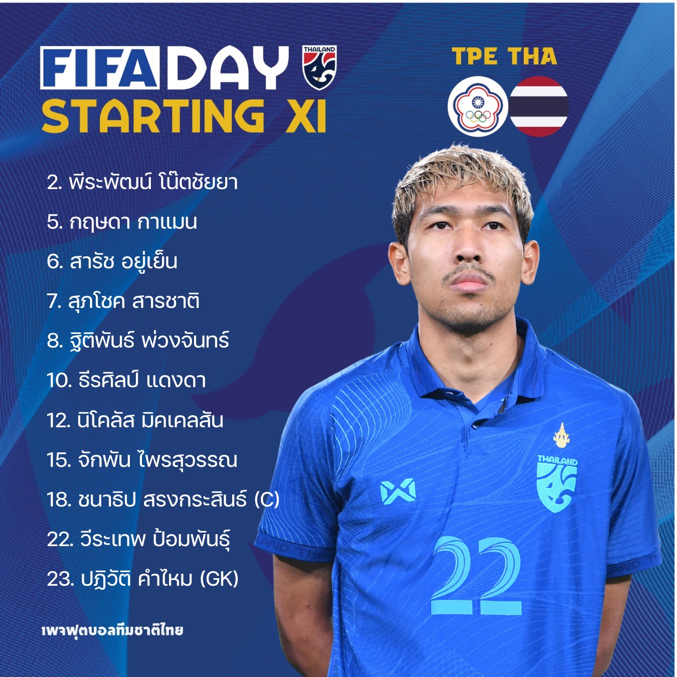 11 ตัวจริง ไต้หวัน VS ไทย บอลอุ่นเครื่องแข่ง 18.00 น. วันนี้ (ลิงก์ดูบอล)
