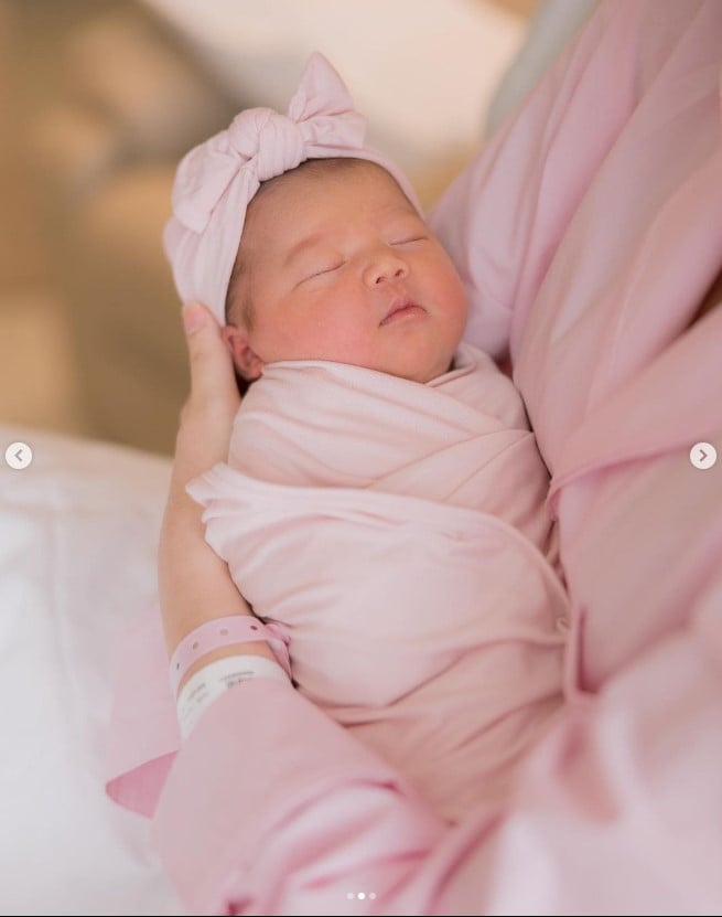“Welcome to the world, Alicia 💖 our sweet baby girl born on the 16th of June at 38 weeks + 2 days 😇 we are so grateful to hold you healthily in our arms.