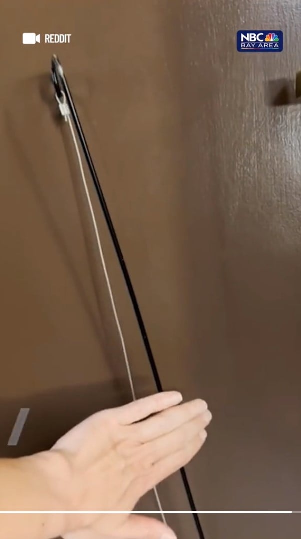แต่อยู่ดี ๆ ในเวลาประมาณ 21.30 น. หญิงคนดังกล่าว ได้ยินเสียงประหลาดมาจากทางหน้าประตูเข้าห้องของเธอ และเมื่อเธอไปดูก็ถึงกับอึ้ง เพราะมีอุปกรณ์ประหลาด คล้ายไม้แขวเสื้อต่อยาว มีลวดขึ่งอยู่คล้ายคันธนู ยื่นออกมาจากช่อใต้ประตูห้องของเธอ