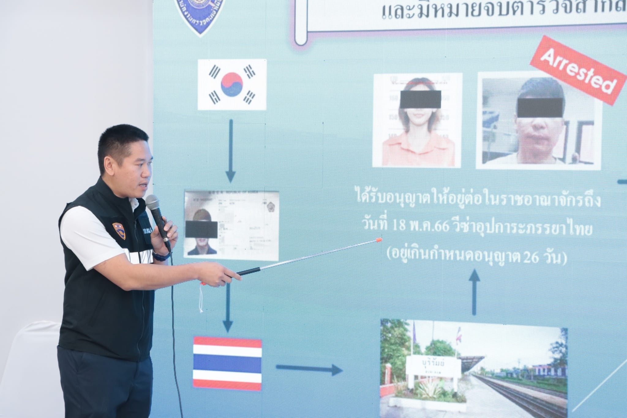 วันที่ 19 มิ.ย.2566 ที่ สำนักงานตรวจคนเข้าเมือง (Immigration Bureau) ได้แถลงผลจับกุม 3 ผู้ต้องหาสำคัญ ชาวเกาหลีใต้ โดยรายแรก กองบังคับการตรวจคนเข้าเมือง 3 (บก.ตม.3) จับกุม นายคิม (นามสมมติ) สัญชาติเกาหลีใต้ อายุ 35 ปี ในข้อหา เป็นบุคคลต่างด้าว อยู่ในราชอาณาจักรโดยการอนุญาตสิ้นสุด (OVERSTAY) จำนวน 1,582 วัน