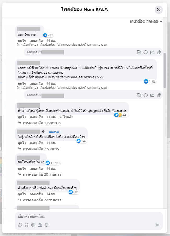“แยกทาง2ปี แต่ไม่หย่า ครอบครัวสมบูรณ์มากแต่ขัดกันคือผู้ชายสามารถมีอีกคนได้เลยหรือทั้ง ๆ ที่ไม่หย่า ขัดกับจริยธรรมเฉย ๆ คะ ผลงานก็ส่วนผลงาน เพราะไม่รู้จะฟังเพลงใครเวลาเหงา”