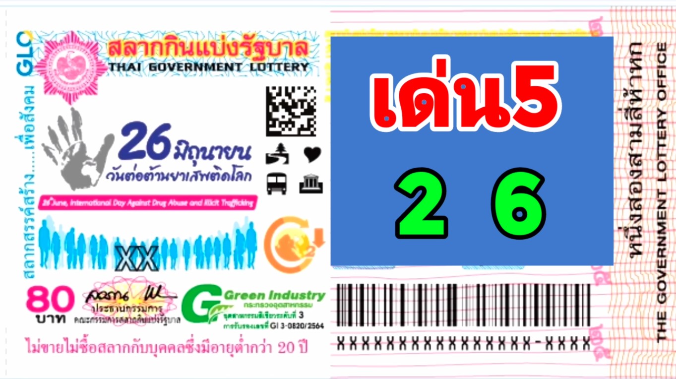 จากในภาพ เป็นมือชูขึ้นมา 5 นิ้วคล้ายกับสัญลักษณ์ ห้ามหรือต่อต้านยาเสพติด จึงได้เลขเด่นเป็น 5 และชุดรองคือ 2-6 เลขวัน วันต่อต้านยาเสพติดโลกนั่นเอง