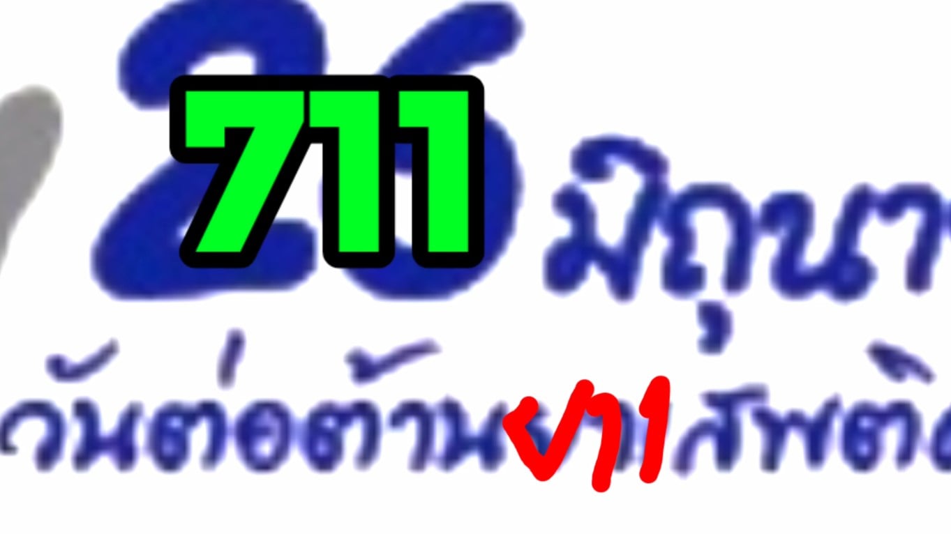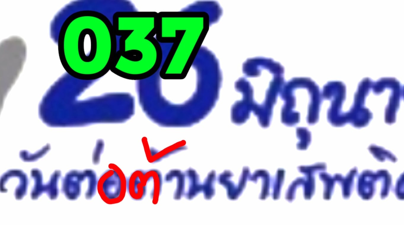 เมื่อสองตัวเลขในตัวหนังสือ ดูจากคำว่า มิถุนายน ตรงคำว่า ‘นา’ ฟอนต์คล้ายกัลเลข 2-6-7 ส่วนแถมล่าง วันต่อต้านยาเสพติดโลก คำว่า ‘ต่อต้าน’ ฟอนต์ตัวหนังสทอคล้ายกับเลข 0-3-7 และคำว่า ‘ยา’ คล้ายกับ 7-1-1