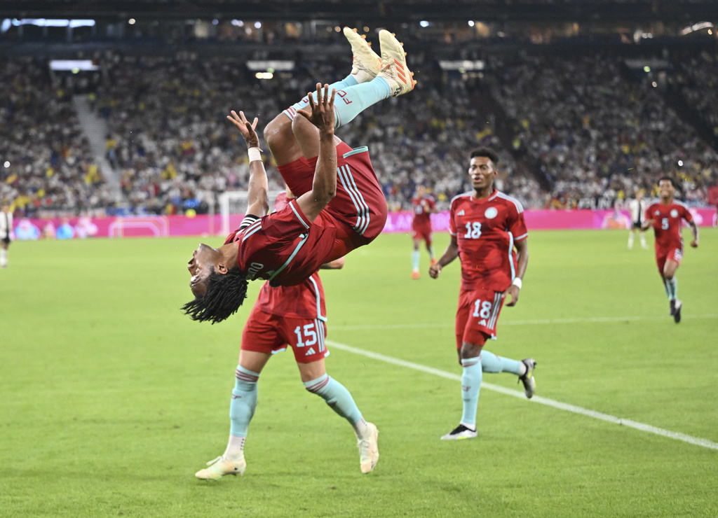 Colombia’s Juan Cuadrado does a somersault after his penalty kick goal during an international friendly soccer match between Germany and Colombia at Veltins-Arena in Gelsenkirchen, Germany, Tuesday, June 20, 2023. (Bernd Thissen/dpa via AP)Germany’s Kai Havertz, right, attempts a shot at goal in front of Colombia’s Daniel Munoz during an international friendly soccer match between Germany and Colombia at Veltins-Arena, in Gelsenkirchen, Germany, Tuesday, June 20, 2023. (AP Photo/Martin Meissner)Germany’s Leroy Sane argues with his teammates after Colombia’s Luis Diaz scores his side’s opening goal during an international friendly soccer match between Germany and Colombia at Veltins-Arena, in Gelsenkirchen, Germany, Tuesday, June 20, 2023. (AP Photo/Martin Meissner)