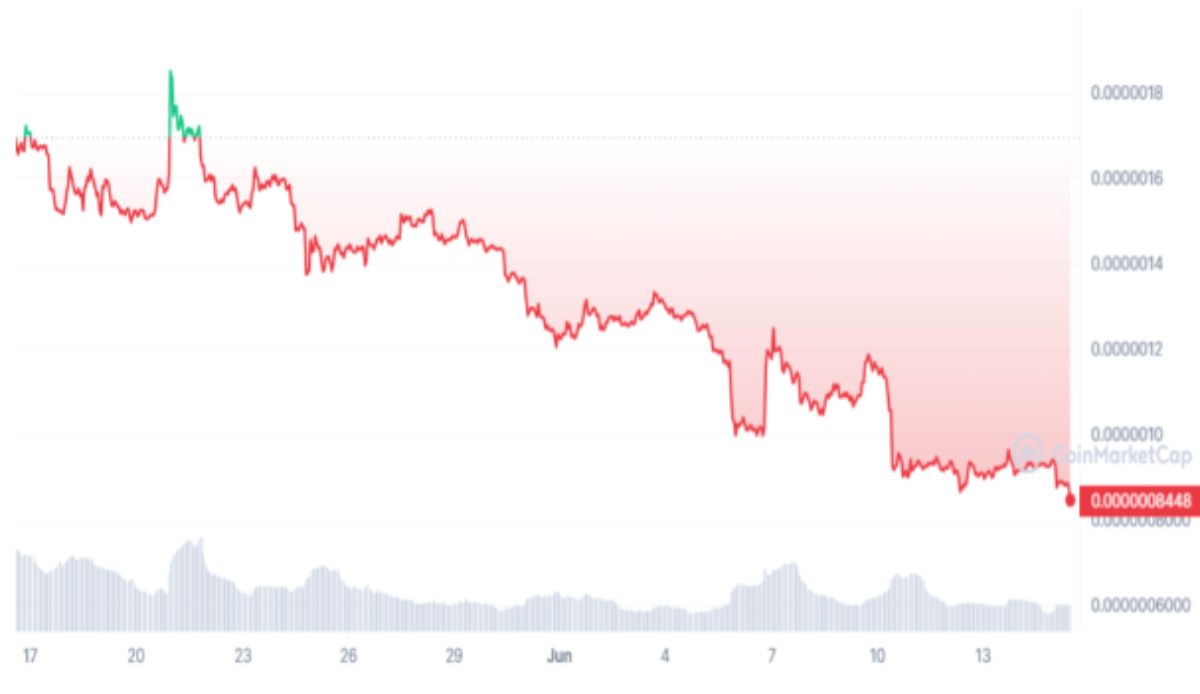 เห็นได้ชัดจากกราฟราคาที่นักลงทุน Shiba Inu ต่างกำลังดิ้นรนเนื่องจากราคาของโทเค็นยังคงลดลง เหรียญฉายา “นักฆ่า Dogecoin” ดังกล่าวมีมูลค่าตกลงตั้งแต่วันที่ 16 เมษายน และก็ดูไม่สู้ดีนัก ปัจจุบัน SHIB อยู่ในช่วงราคาเดียวกับเมื่อต้นปี 2023 ซึ่งหมายความว่ามูลค่าที่ทำมาทั้งหมดนั้นจบไปแล้ว