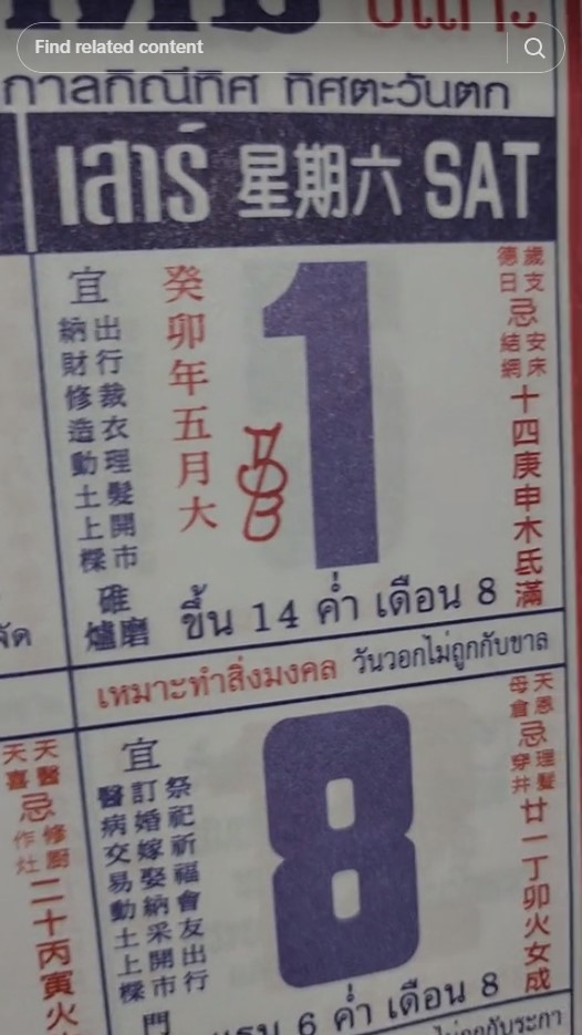 ถัดมาที่ปฏิทินจีนฉบับที่ 3 เลขชุดนี้อ่านยากด้วยลายตะวัด แต่ไม่ได้เป้นอุปสรรคสำหรับคอหวยที่เชื่อว่า ยิ่งยากยิ่งมีโอกาส ได้เลขชุดมาเป็น 2 – 4 – 5 – 6 – 8