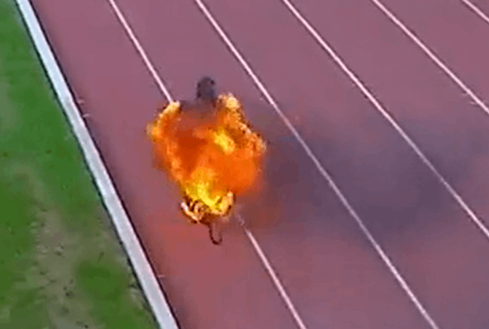 หนุ่มจุดไฟเผาร่างตัวเอง วิ่งเป็นระยะทาง 272 เมตร เพื่อทำลายสถิติกินเนสบุ๊ค ในหัวข้อวิ่งโดยมีไฟเผาเป็นระยะทางไกลที่สุด
