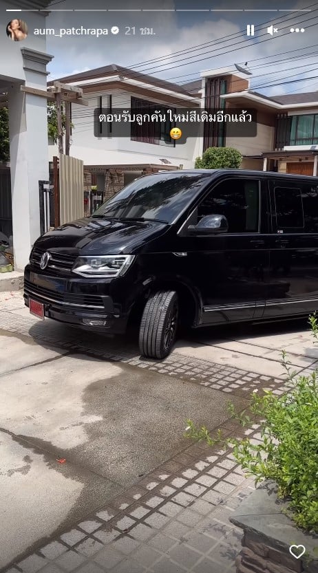 ในภาพเซ็ตดังกล่าว อั้มได้เผยให้เห็นรถคันใหม่ล่าสุดสีดำสนิท ยี่ห้อ Volkswagen ซึ่งอั้มได้เปิดให้เห็นภายในรถที่มาพร้อมกับจอทีวีขนาดใหญ่ ดูได้ทั้ง Netflix และ Disney+ จนแฟน ๆ แห่แซวว่าอั้มคงได้ดูซีรีส์หนำใจ เพราะก่อนหน้านี้เจ้าตัวเคยให้สัมภาษณ์ว่ากำลังติดซีรีส์จีน จนถึงขั้นไม่ออกไปข้างนอกถ้ายังดูไม่จบ