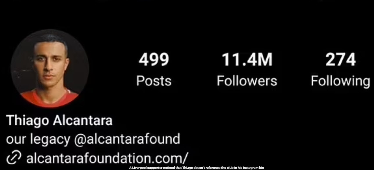 วันที่ 4 ก.ค. 2023 กลายเป็นกระแสฮือฮาขึ้นมาทันทีสำหรับแฟนบอล ลิเวอร์พูล เมื่อ ติอาโก้ อัลกันตาร่า กองกลางจอมเทคนิคของทีม แสดงท่าทีอาจจะย้ายออกจากสโมสร หลังเจ้าตัวลบสโมสรออกจากไบอินตราแกรมส่วนตัวเป็นที่เรียบร้อยแล้ว