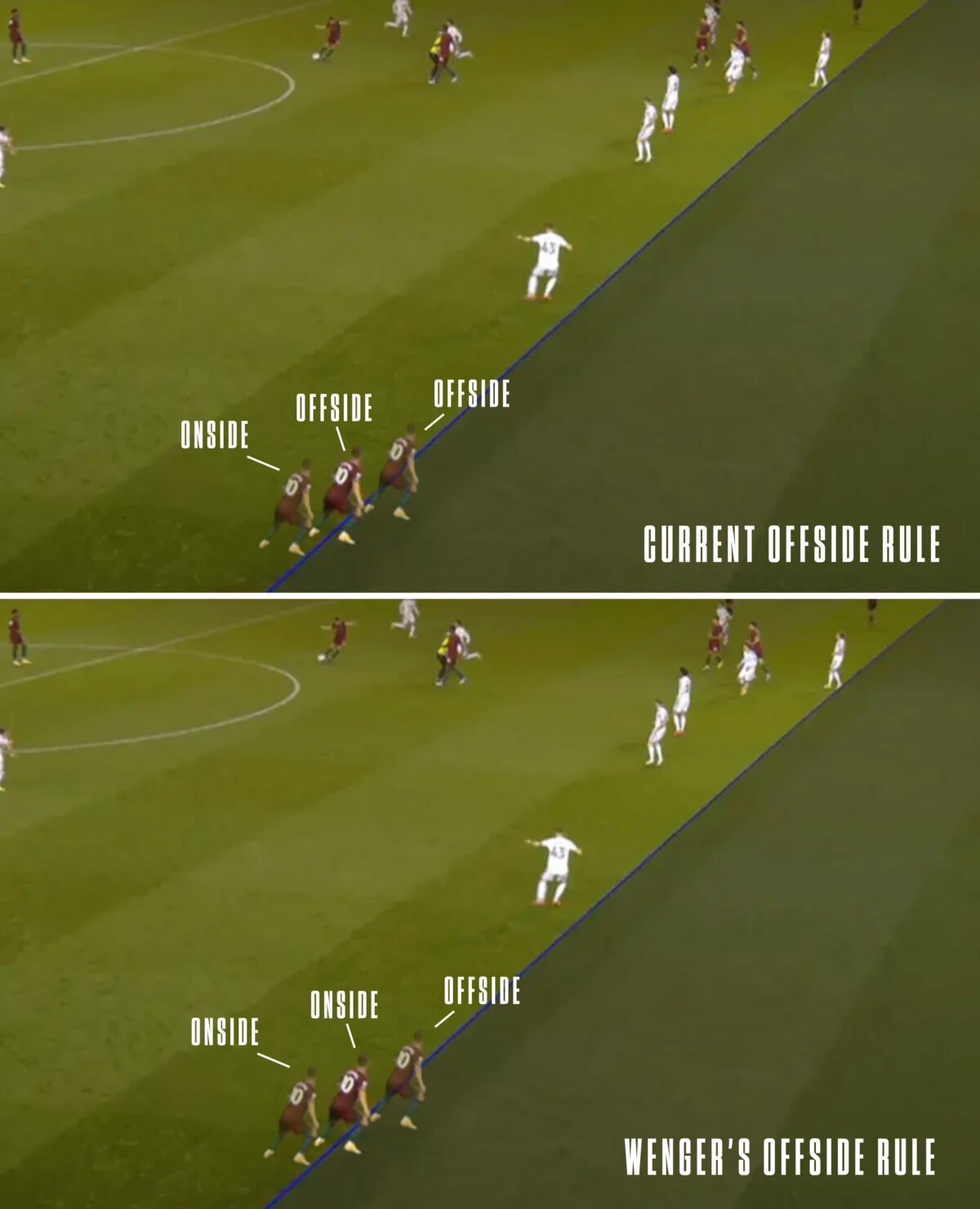 อย่างไรก็ตาม ข้อเสนอใหม่ของ เวนเกอร์ คือ “ทุกส่วนของร่างกาย” ของผู้เล่นฝ่ายรุก จะต้องเหลื่อมผู้เล่นฝ่ายรับ ในจังหวะส่งบอล ถึงจะถือว่าเข้าข่ายการล้ำหน้า หากมีส่วนใดส่วนหนึ่งของร่างกายที่เท่ากันอยู่ จะไม่ถือว่าเป็นการล้ำหน้า