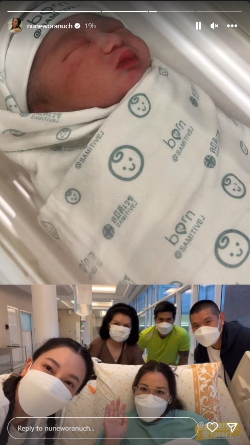 โดยงานนี้ทั้งบ้าน ภิรมย์ภักดี ยกกันไปเกาะหน้าห้องคลอดเพื่อไปให้กำลังใจ คุณแม่เตย และรอดูหน้าหลานชายอย่างใกล้ชิด ซึ่งรมไปถึงพี่สะใภ้ใหญ่ของบ้านอย่าง นุ่น วรนุช ภิรมย์ภักดี ด้วยเช่นกัน โดยทางคุณป้าก็เห่อหลายชายมาก ๆ อัดคลิปสตอรี่ไอจี ตั้งแต่ครั้งแรกที่เข็นหลานออกมาจากห้องคลอด