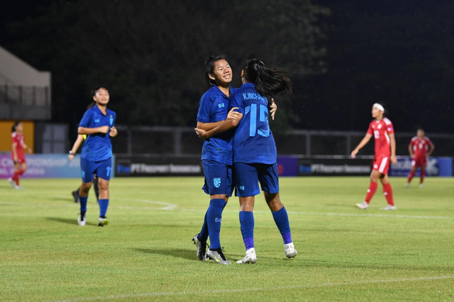 เท่านั้นไม่พอนาทีที่ 19 จีน่า ทองพันธ์ ได้โอกาสยิงไปชนเสา เด้งมาเข้าทาง ณัฐชา แก้วอันตา ซ้ำเข้าไปให้ ไทย นำห่าง เป็น 2-0 และจบครึ่งแรกไปด้วยสกอร์นี้