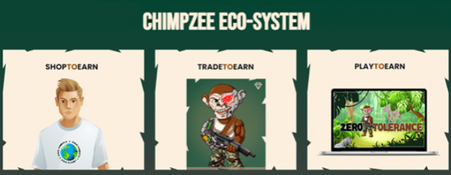 ทั้งสามแพลตฟอร์มให้ผู้เข้าร่วมได้รับรางวัลเป็นเหรียญ CHMPZ ผู้ถือ Chimpzee NFT จะได้รับผลประโยชน์ในระบบนิเวศของ Chimpzee โดยขึ้นอยู่กับระดับพาสปอร์ตของผู้ใช้