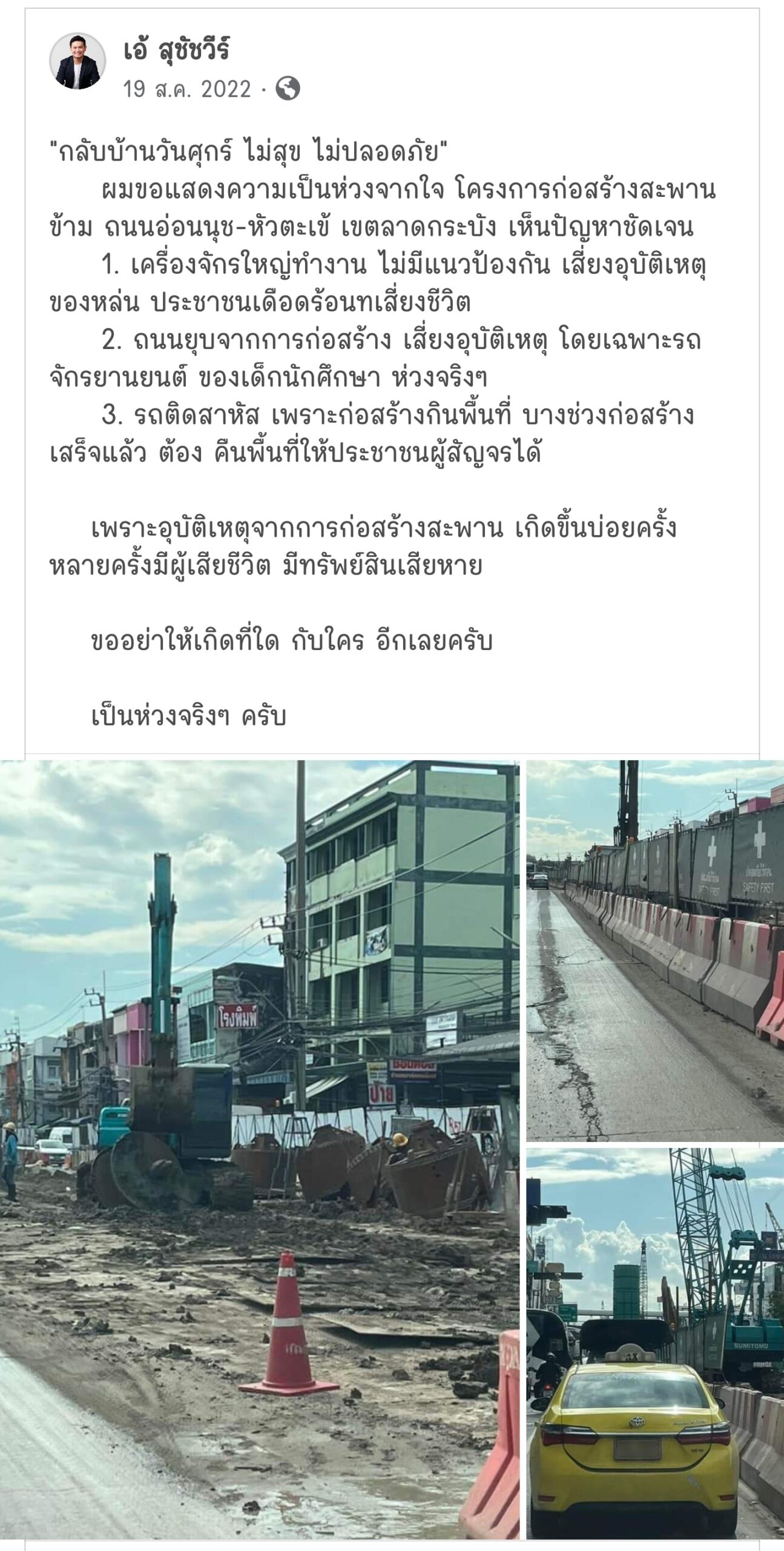 ผมขอแสดงความเป็นห่วงจากใจ โครงการก่อสร้างสะพานข้าม ถนนอ่อนนุช-หัวตะเข้ เขตลาดกระบัง เห็นปัญหาชัดเจน