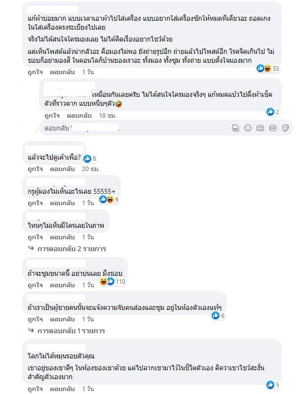 โดยทางเพจ ได้ให้ความเห็นถึงเรื่องนี้ว่าเป็นสิทธิส่วนบุคคล แม้จะทำให้เพื่อนบ้านคนอื่นอุจาดตาไปบ้าง แต่เจ้าของห้องก็แก้ผ้าพื้นที่คอนโดของตัวเอง