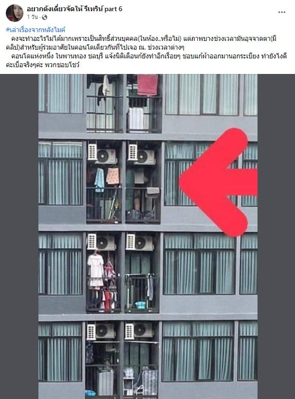 เมื่อวันที่ 11 กรกฎาคม 2566 เพจเฟซบุ๊ก อยากดังเดี๋ยวจัดให้ รีเทริน์ part 6 ได้เอาเรื่องราวร้องเรียนจากหญิงสาวรายหนึ่ง เหตุเกิดขึ้นที่คอนโดแห่งหนึ่ง อ.พานทอง จ.ชลบุรี ถึงการที่เพื่อนบ้านชายคอนโดตรงข้าม ชอบเดินแก้ผ้าออกมาโชว์เรือนร่างตรงระเบียงห้องของเขาเอง