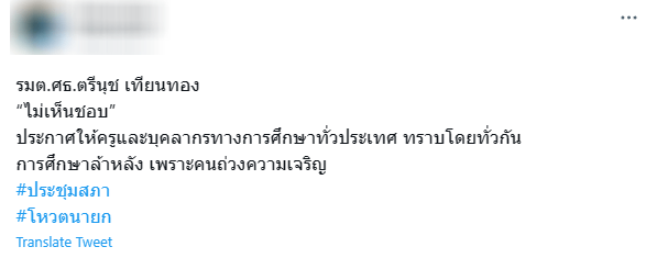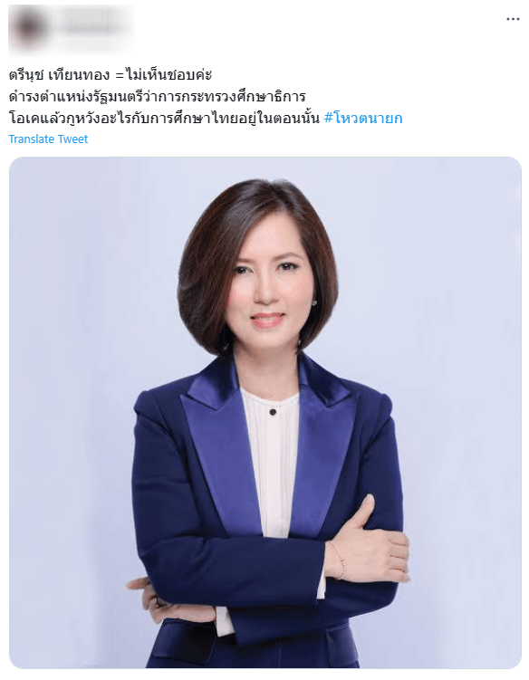 ชาวเน็ตเดือด ‘ตรีนุช เทียนทอง’ โหวต ‘ไม่เห็นชอบ’ ชาวเน็ตอัด ศธ. ไม่เจริญ