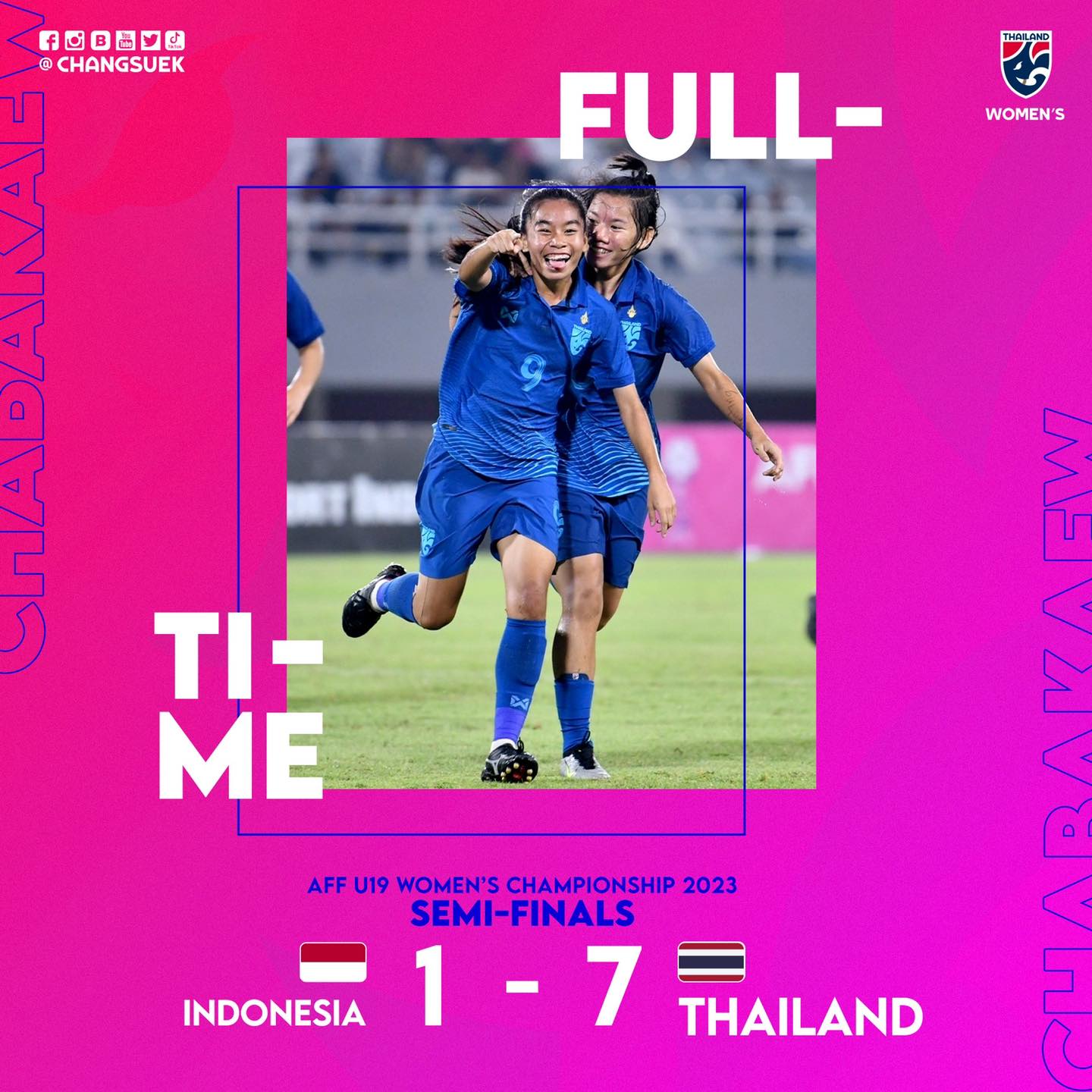 ชัยชนะนัดนี้ ทำให้ฟุตบอลหญิงทีมชาติไทย รุ่นอายุไม่เกิน 19 ปี ผ่านเข้ารอบชิงชนะเลิศของศึกชิงแชมป์อาเซียน รุ่นอายุไม่เกิน 19 ปี โดยจะไปพบกับ เวียดนาม ในรอบชิงชนะเลิศ ซึ่งจะแข่งขันกันที่ เกโรลา จาร์กาบาร์ริ่งเมือง ปาเล็มบัง ประเทศอินโดนีเซีย ในวันที่ 15 กรกฎาคม 2566 เวลา 19.30 น.