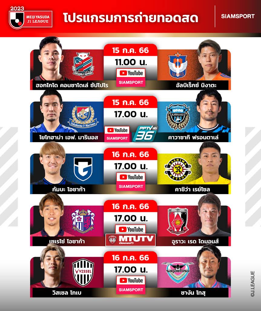 ตารางแข่งขัน เจลีก ญี่ปุ่น 2023 โปรแกรมฟุตบอล เจลีก สัปดาห์ที่ 21 พร้อมช่องถ่ายทอดสด
