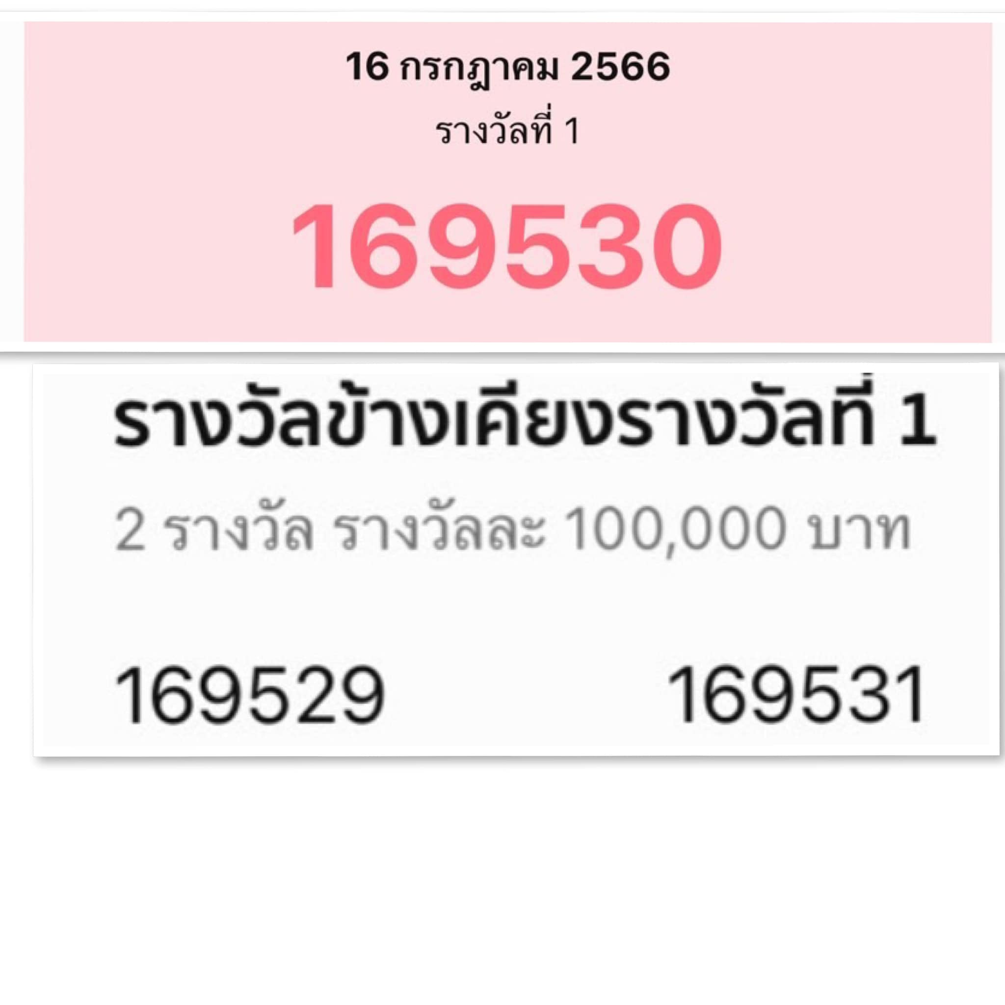 น.ต.ศิธา ทิวารี สมาชิกพรรคไทยสร้างไทย โพสต์ข้อความผ่านเฟซบุ๊ก รับกระแสประกาศรางวัลหวยงวดวันที่ 16 ก.ค. 66 ที่ผ่านมา โดยหวยรางวัลที่ 1 คือ 169530 ส่วนรางวัลข้างรางวัลที่ 1 คือ 169529 และ 169531