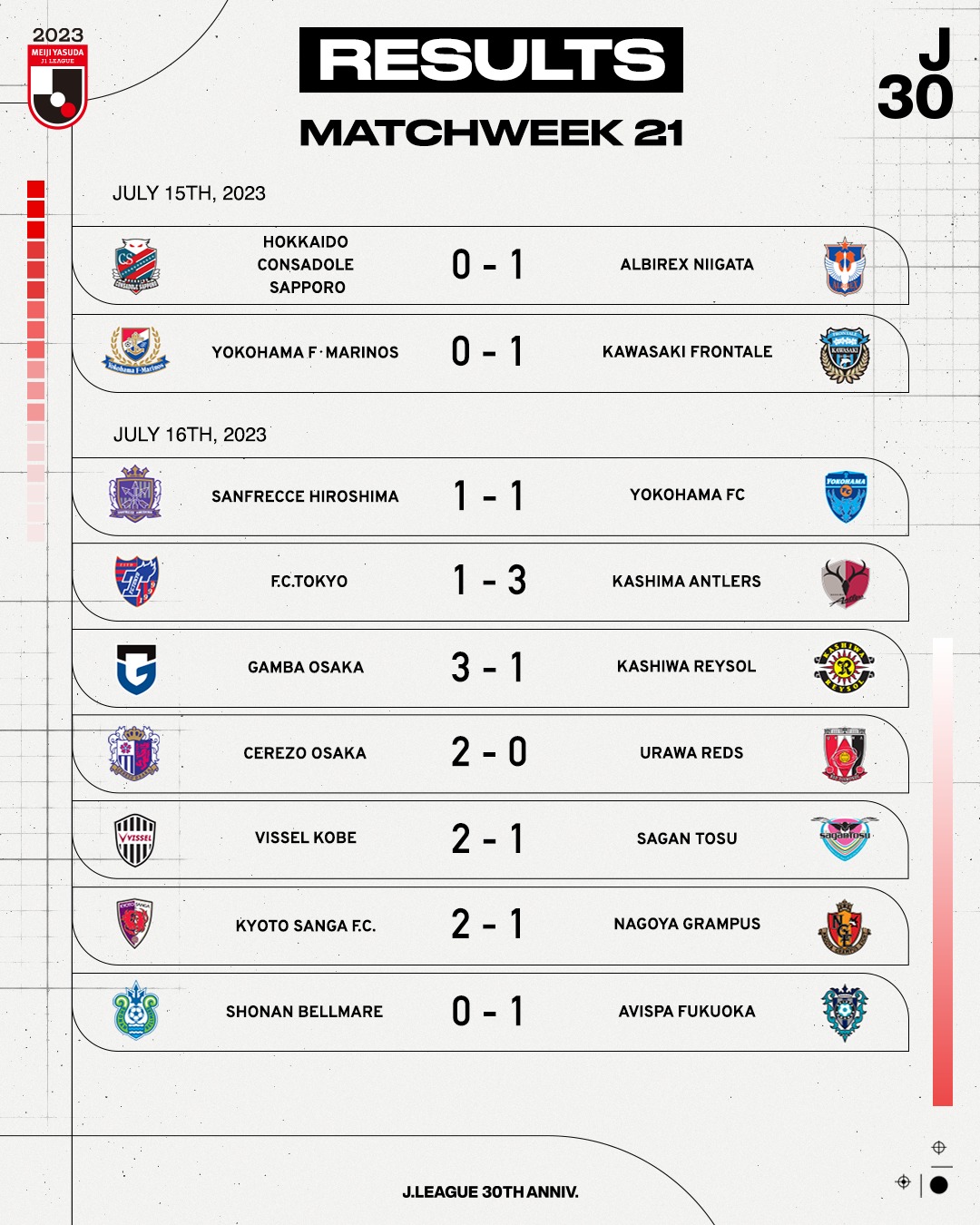 สรุปผลการแข่งขัน เจลีก ญี่ปุ่น 2023 หลังจบนัดที่ 21