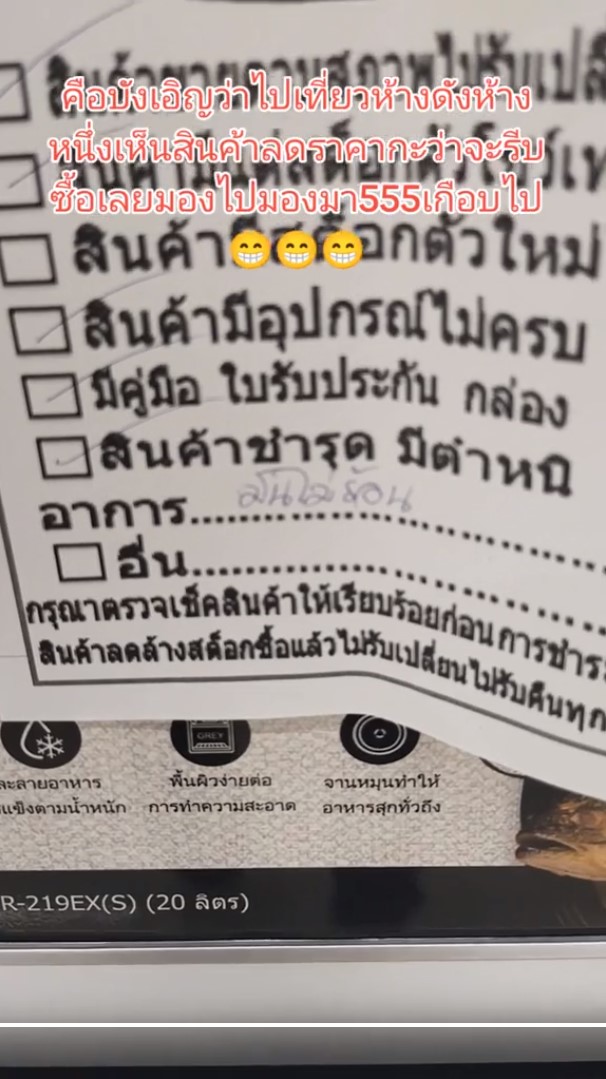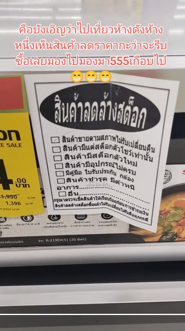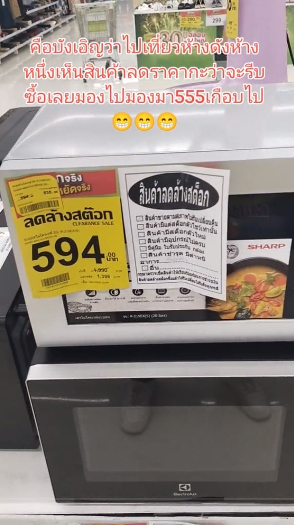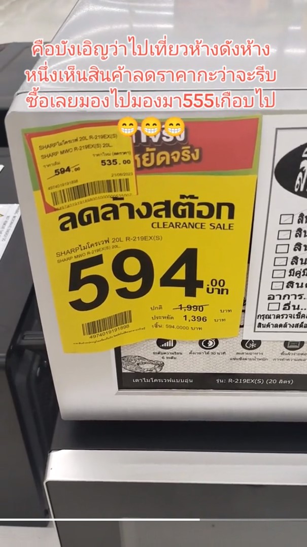ห้างดังใจป้ำจัดโปร ลดราคา ไมโครเวฟ เหลือ 500 กว่าบาท อดใจไม่ไหวกำลังจะจ่ายตัง ดูป้ายเตือนดี ๆ เอาไปคืนแทบไม่ทัน เพราะแบบนี้!