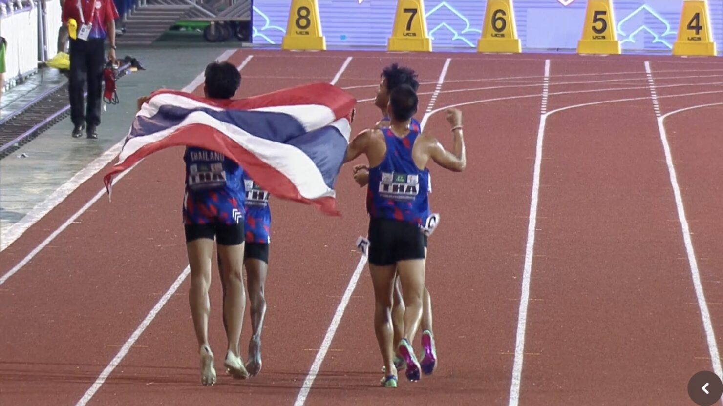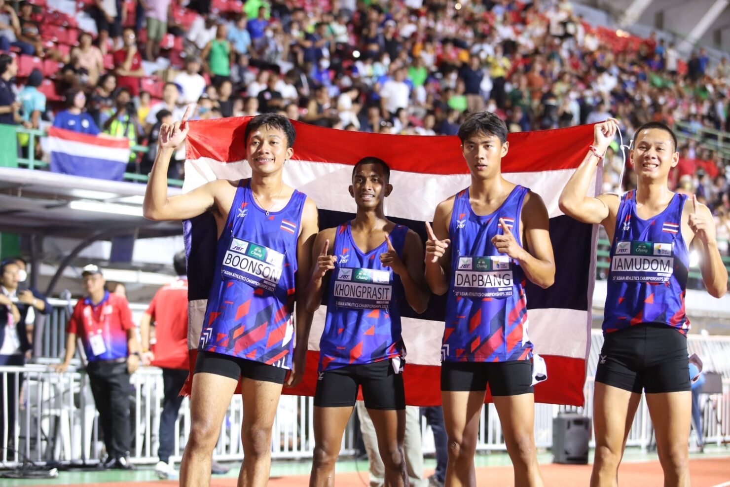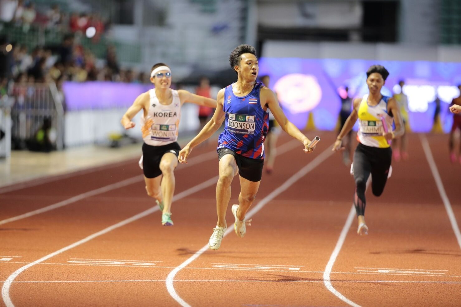 สำหรับทีมนักวิ่งลมกรดหนุ่มไทย ที่ประกอบไปด้วย “ไฟเตอร์” ณฐวรรธ เอี่ยมอุดม, “ต้า” สรอรรถ ดาบบัง, “เฉาก๊วย” ชยุตม์ คงประสิทธิ์ และ “บิว” ภูริพล บุญสอน คว้าเหรียญทองด้วยสถิติ 38.55 วินาที พร้อมกับทำลายสถิติประเทศไทยและสถิติกรีฑาชิงแชมป์เอเชียได้อย่างยอดเยี่ยม