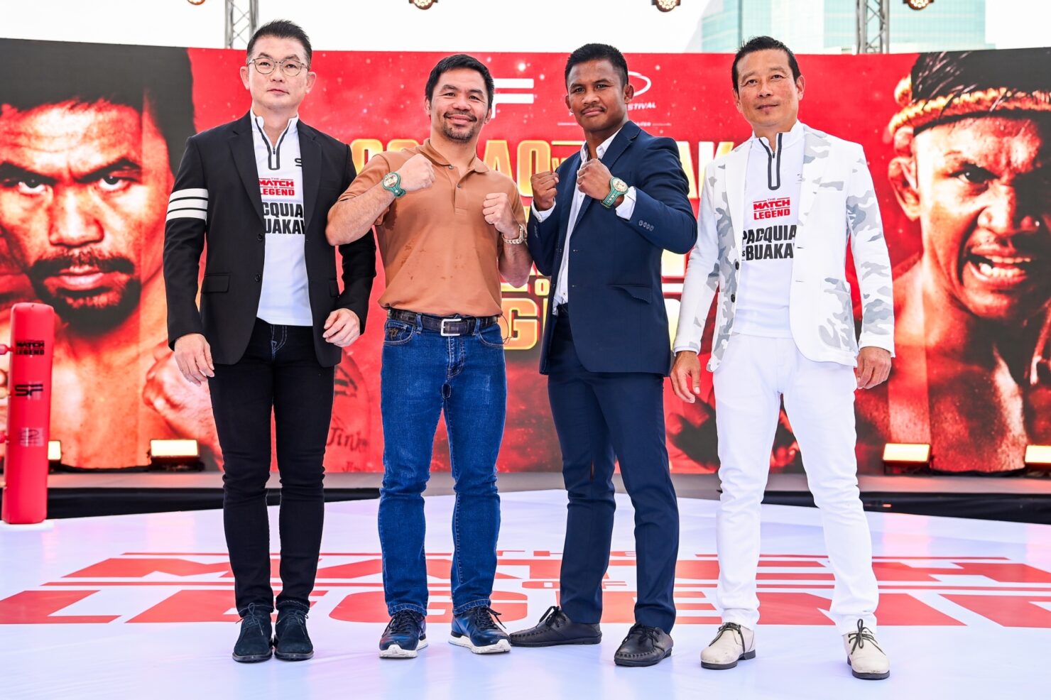 นายวินิจ เลิศรัตนชัย เปิดเผยว่า ก่อนหน้านี้ บริษัท เฟรชแอร์ เฟสติวัล จำกัด ได้สร้างปรากฏการณ์ให้วงการกีฬาโลกได้จดจำมาแล้วกับการจัดศึกฟาดแข้ง “ แดงเดือด” ในประเทศไทย ระหว่าง 2 สโมสรยักษ์ใหญ่จากพรีเมียร์ลีก “ปีศาจแดง” แมนเชสเตอร์ ยูไนเต็ด กับ “หงส์แดง” ลิเวอร์พูลใน THE MATCH Bangkok Century Cup 2022 จากงานในครั้งนั้นก่อให้เกิดไอเดียมาถึงงานนี้ เพราะว่านักมวยทั้ง 2 ท่าน ปาเกียว และ บัวขาว ถือเป็นนักชกระดับตำนานของวงการมวยสากลและมวยไทยที่คนทั่วโลกรู้จักและอยากให้ทั้ง 2 กลับมาเป็นกระแสของกีฬาโลกอีกครั้ง THE MATCH OF LEGEND จึงเกิดขึ้น ภายใต้แนวคิดการสร้างสรรค์งานอีเวนต์ในรูปแบบใหม่ที่มุ่งเน้นดึงดูดนักกีฬาระดับเวิลด์ไอคอนมาจัดแข่งขันกัน